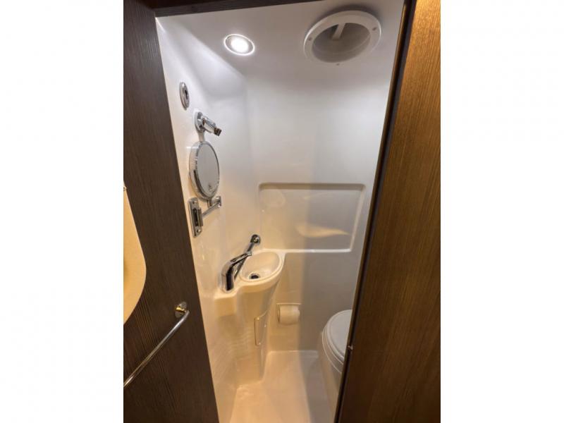 Get ready to drive and stay in comfort and luxury in this motorhome with everything you need and everything you didn't even know you wanted! The heated driver and passenger seats swivel to face the interior living space allowing you to utilize the Corian countertop with an LED TV above to place your beverages, and the driver can use this as a desk to work from here once stopped. Whip up a meal using the galley kitchen featuring a two-burner gas stove, and a large stainless steel sink and faucet, plus extra counter space for food prep. There is a 1.2 cu. ft. drawer microwave and deep drawers for storage, plus a slide-out pantry and a refrigerator with a freezer across from the sink. The power sofa in the rear can be fully flat with a push of a button so two can sleep or rest. And there is storage throughout for your hanging clothes, towels, luggage, dishes and more.