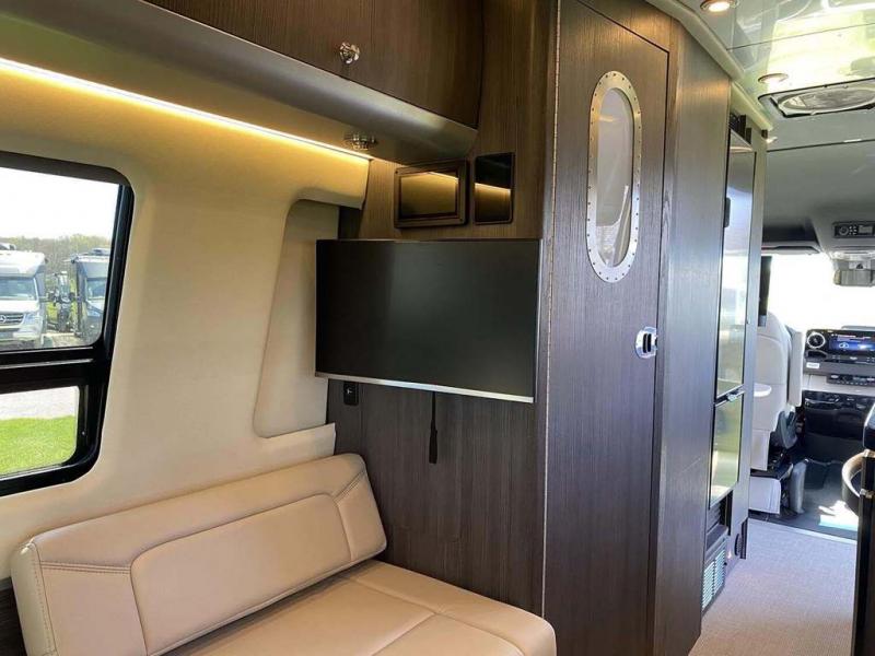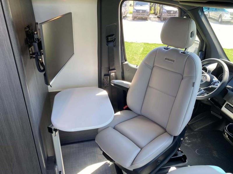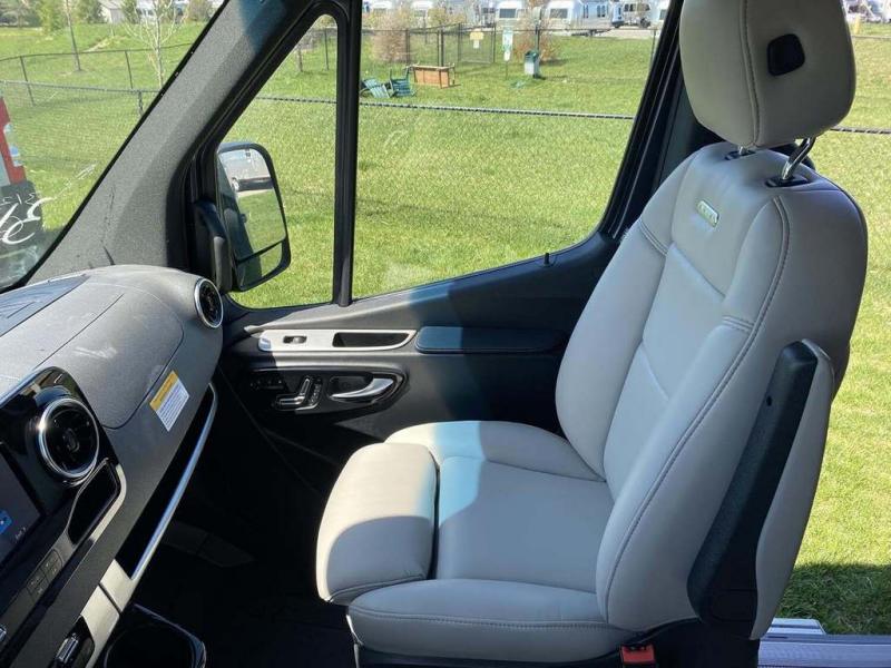 The Airstream Interstate 24GT Class B diesel motorhome offers comfort, performance and safety with the Mercedes-Benz Sprinter 3500 extended chassis, the 3.0L V6 turbo diesel engine, BlueTEC SCR technology, and Adaptive Electronic Stability Program. Also included: active blind spot, brake, driver attention, rear cross traffic assist, plus more safety features giving you peace of mind on the road. More standout features include the power-sliding side door for ease in entering and exiting with a built-in screen door to allow airflow when parked, storage cubbies with USB charging ports, and a super comfortable Ultraleather sofa that offers both seating and sleeping space. You will also appreciate the touch screen/touch pad electronic controls with an Energy Management system, and a 400 watt solar system for off-grid camping