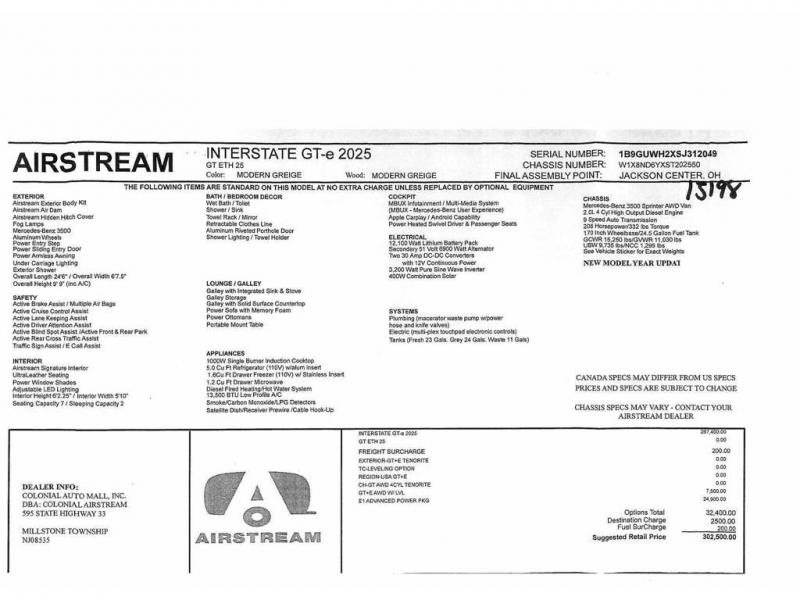Airstream Interstate 24GT Class B diesel motorhome Std. Model highlights: