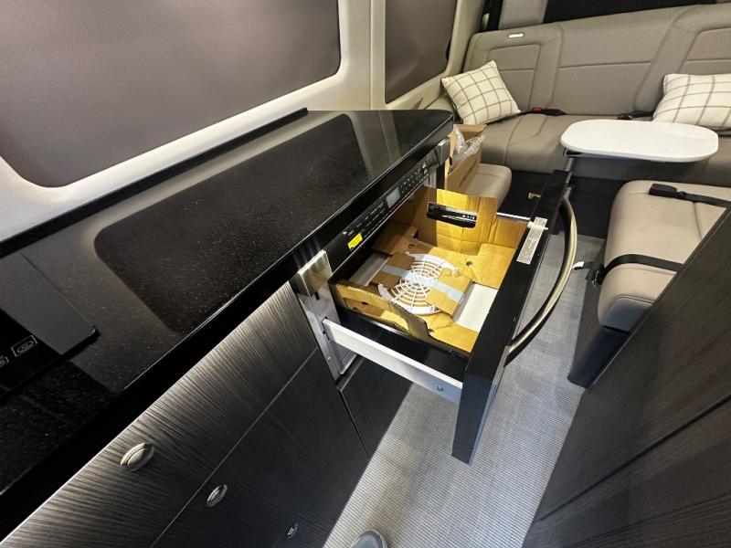 The Airstream Interstate 24GT Class B diesel motorhome offers comfort, performance and safety with the Mercedes-Benz Sprinter 3500 extended chassis, the 3.0L V6 turbo diesel engine, BlueTEC SCR technology, and Adaptive Electronic Stability Program. Also included: active blind spot, brake, driver attention, rear cross traffic assist, plus more safety features giving you peace of mind on the road. More standout features include the power-sliding side door for ease in entering and exiting with a built-in screen door to allow airflow when parked, storage cubbies with USB charging ports, and a super comfortable Ultraleather sofa that offers both seating and sleeping space. You will also appreciate the touch screen/touch pad electronic controls with an Energy Management system, and a 400 watt solar system for off-grid camping