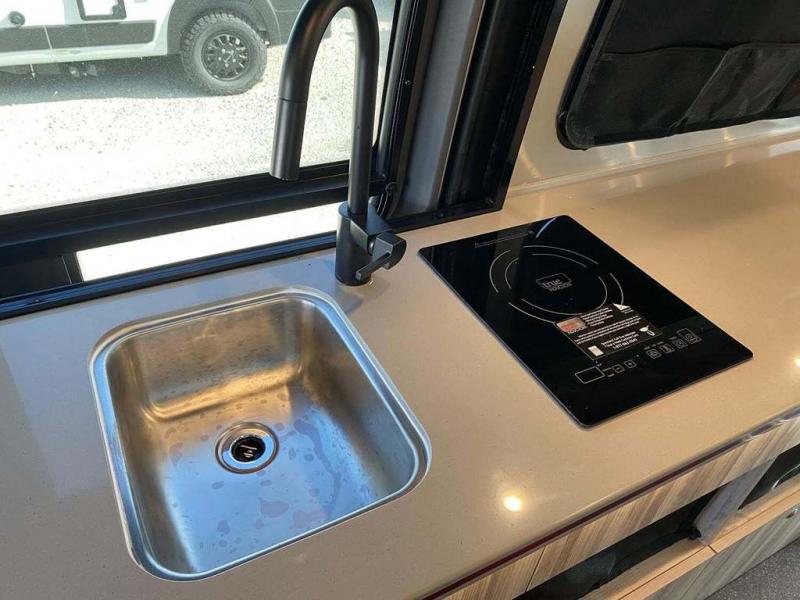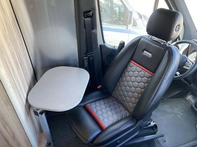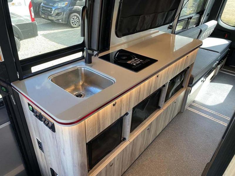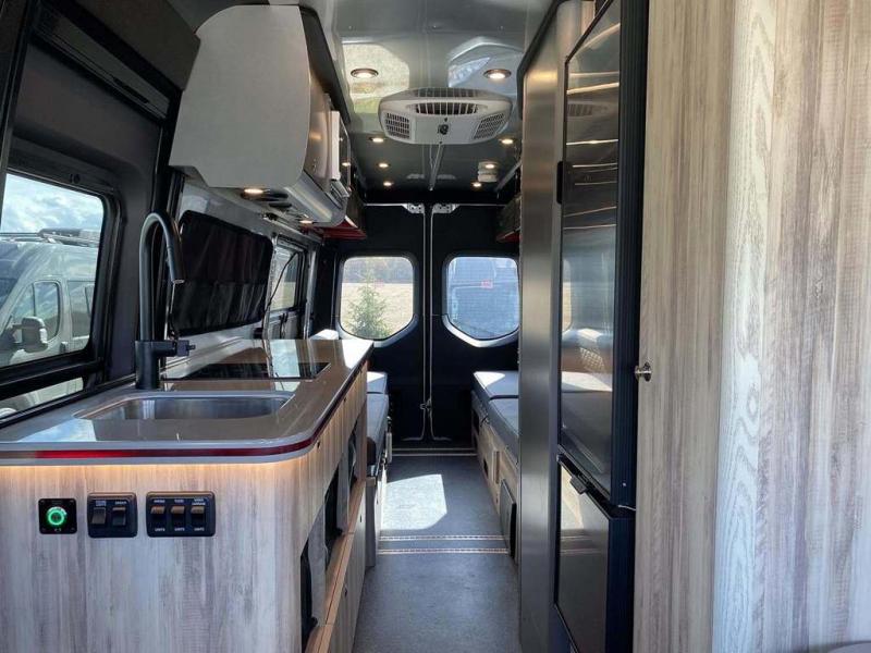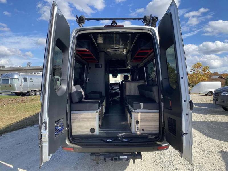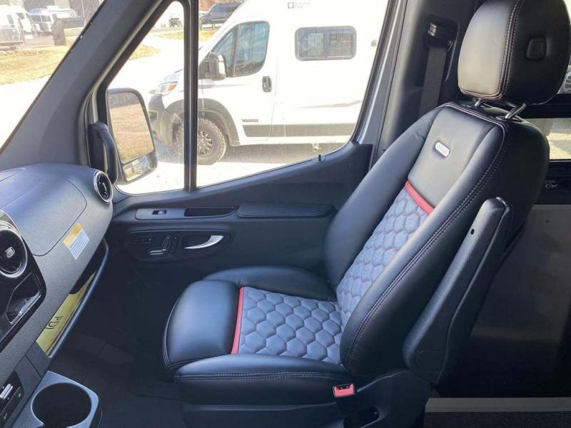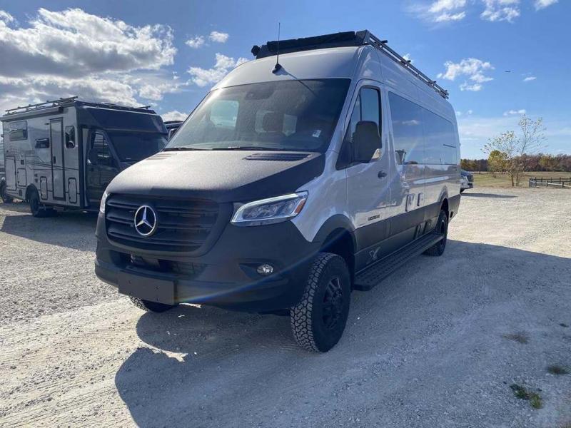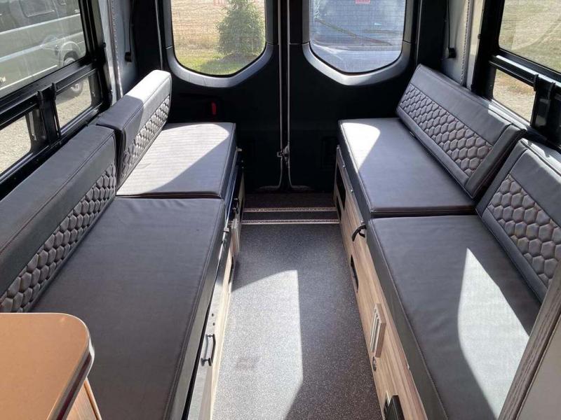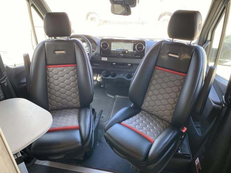 For the true adventurer, there isn't much that quite compares to the Airstream Interstate 24X Class B diesel motorhome! This brand is exceptional for off-grid tours because of its performance capabilities, air ride suspension, and all-season all-terrain rugged tires. There is also a black roof rack, exterior gear wash station, and an off-road front HD LED light bar. The cockpit has an MBUX infotainment system and premium digital media receiver with Bluetooth connectivity for the tech enthusiast, and you can also add an optional front bed system to the cockpit if you need another sleeping space. You'll also love the adjustable LED lighting, Ultraleather seating, solid surface galley countertop with edge band lighting, and many more interior comforts!