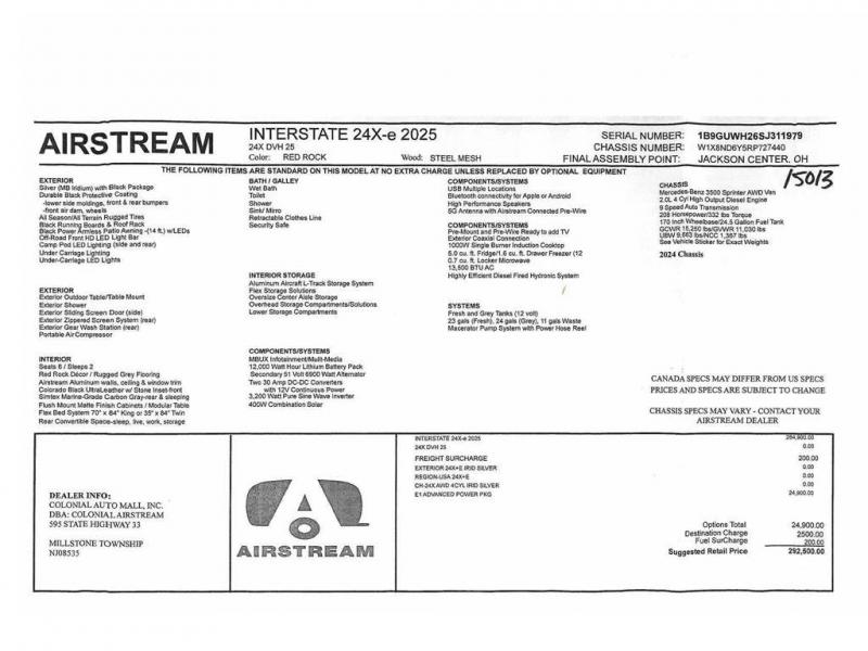 Airstream Interstate 24X Class B diesel motorhome Std. Model highlights: