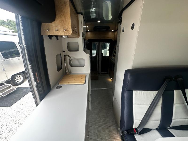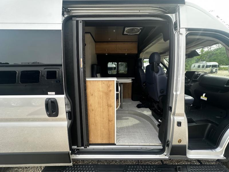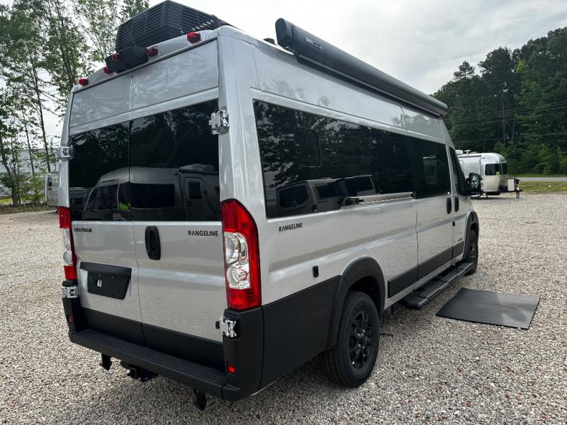 The Airstream Rangeline offers complete comfort and flexibility with great living spaces, flexible storage throughout, and all the amenities you need to enjoy travel. Its sleek design with painted grille, two interior color choices with Warm River Oak cabinets and drawers, and gray laminate countertops allows you to travel in style. The Ram ProMaster 3500 chassis offers front-wheel drive and 276 horsepower, with an efficient gas-powered heat and hot water system plus SumoSprings and SuperSprings for an overall better driving experience. Rear storage includes MOLLE panels on the rear doors to hang all your gear, and space under the bed for even more cargo.
