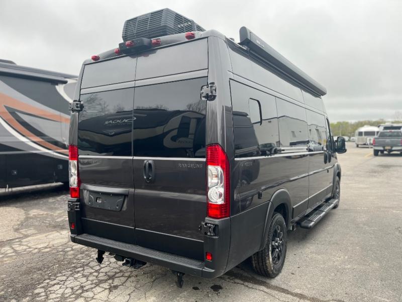 The Airstream Rangeline offers complete comfort and flexibility with great living spaces, flexible storage throughout, and all the amenities you need to enjoy travel. Its sleek design with painted grille, two interior color choices with Warm River Oak cabinets and drawers, and gray laminate countertops allows you to travel in style. The Ram ProMaster 3500 chassis offers front-wheel drive and 276 horsepower, with an efficient gas-powered heat and hot water system plus SumoSprings and SuperSprings for an overall better driving experience. Rear storage includes MOLLE panels on the rear doors to hang all your gear, and space under the bed for even more cargo. The optional pop-top roof has three screen windows and another bed, expanding sleeping capacity to four people.