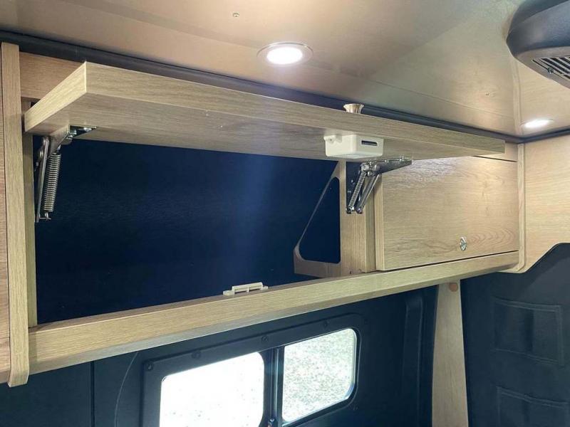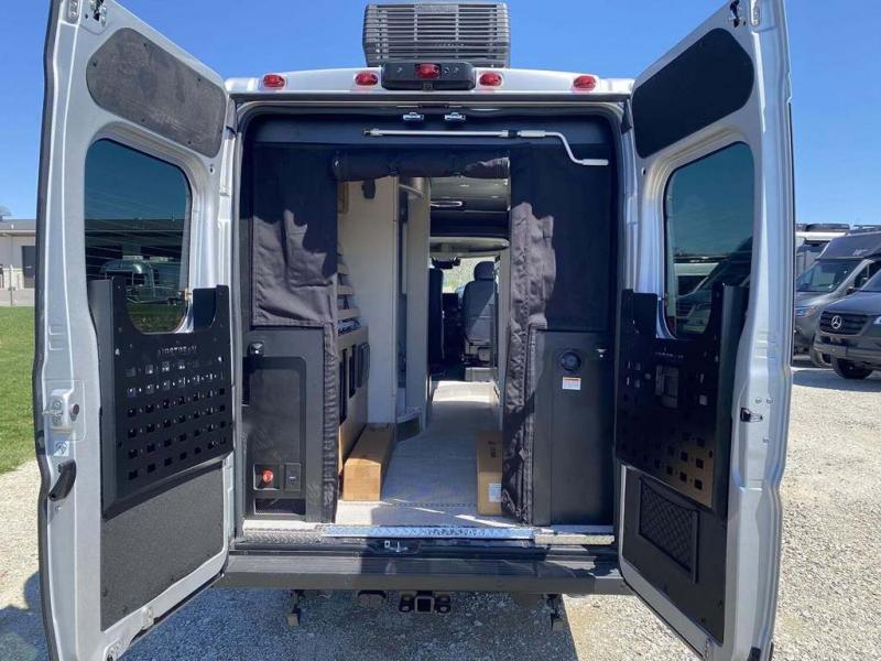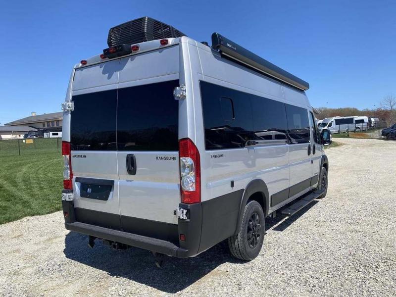 The Airstream Rangeline offers complete comfort and flexibility with great living spaces, flexible storage throughout, and all the amenities you need to enjoy travel. Its sleek design with painted grille, two interior color choices with Warm River Oak cabinets and drawers, and gray laminate countertops allows you to travel in style. The Ram ProMaster 3500 chassis offers front-wheel drive and 276 horsepower, with an efficient gas-powered heat and hot water system plus SumoSprings and SuperSprings for an overall better driving experience. Rear storage includes MOLLE panels on the rear doors to hang all your gear, and space under the bed for even more cargo. The optional pop-top roof has three screen windows and another bed, expanding sleeping capacity to four people.