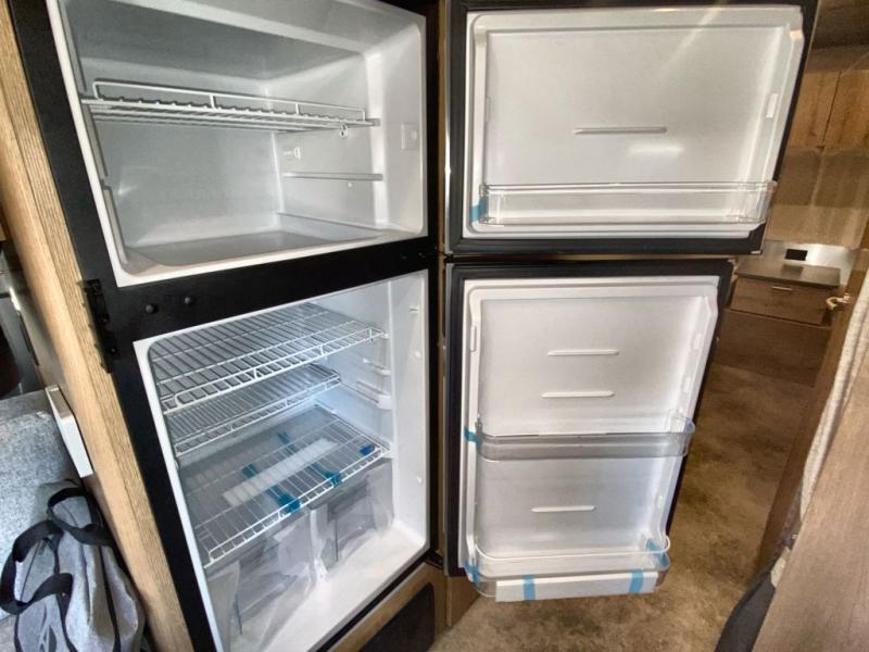 At 25 feet, this model strikes the perfect balance between easy maneuverability and spacious living. The front twin-bed layout offers superior comfort for partners or travel companions, with individual sleeping spaces, extra underbed storage, and improved ease of movement throughout the night. Large panoramic windows wrap the front bedroom in natural light and sweeping outdoor views, creating a serene atmosphere morning and night.
