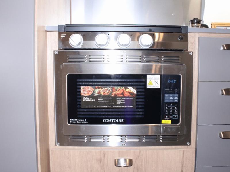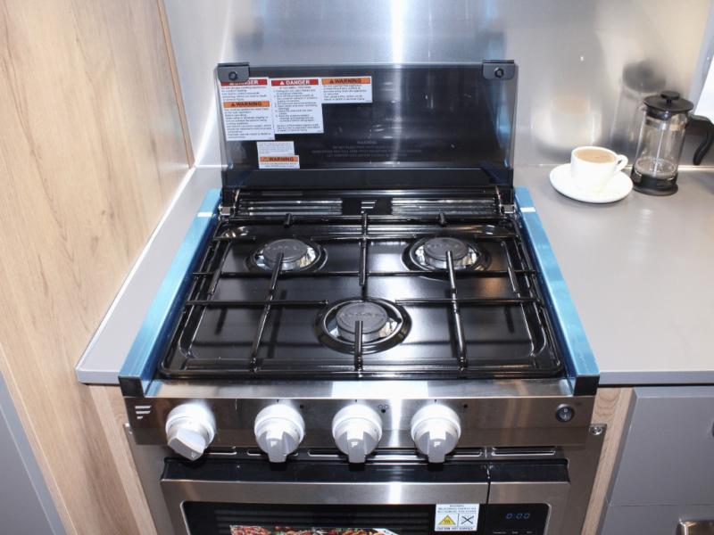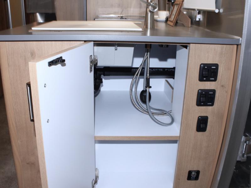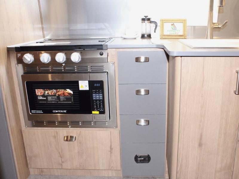 As Airstream’s most powerful travel trailer, the Trade Wind comes loaded with roof-mounted solar panels, a fully inverted electrical system, and a massive internal battery pack. Its rugged design includes a 3-inch suspension lift kit and durable Goodyear Wrangler Workhorse tires, perfect for tackling rough terrain. Maneuvering and parking are effortless thanks to the rear-view monitoring system.