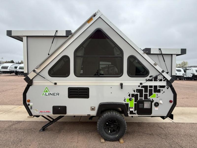 With any Aliner Classic A-frame folding pop-up camper you will find Azdel lightweight, composite interior wall and ceiling panels for added durability and strength. The additional corner windows provide panoramic views, and the hardwood cabinet doors will give these campers a more at-home feel. Four stabilizer jacks come standard, along with an LP connection, an exterior outlet, and an outside shower. It's no wonder these campers are named classic! Choose your model and start camping today!