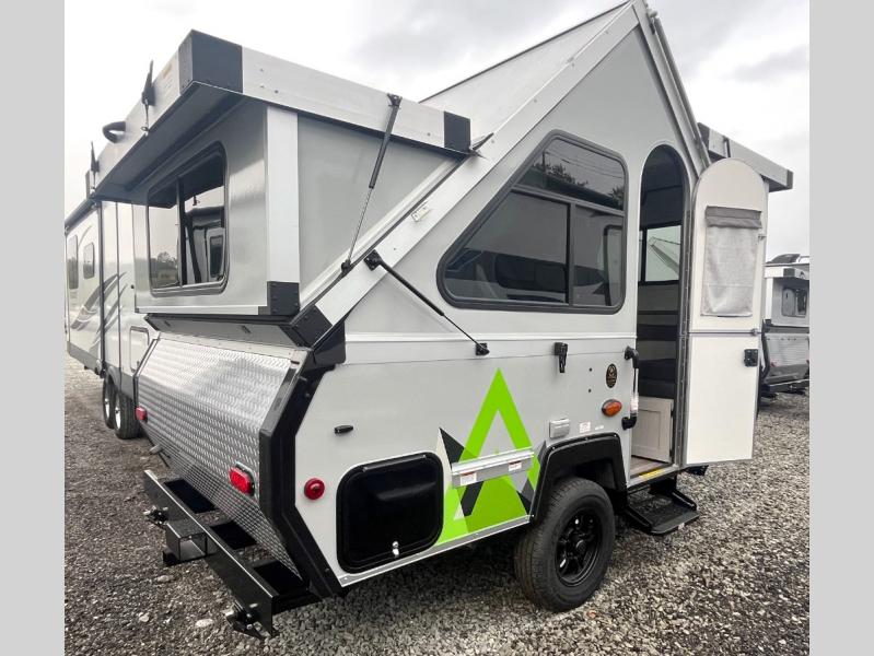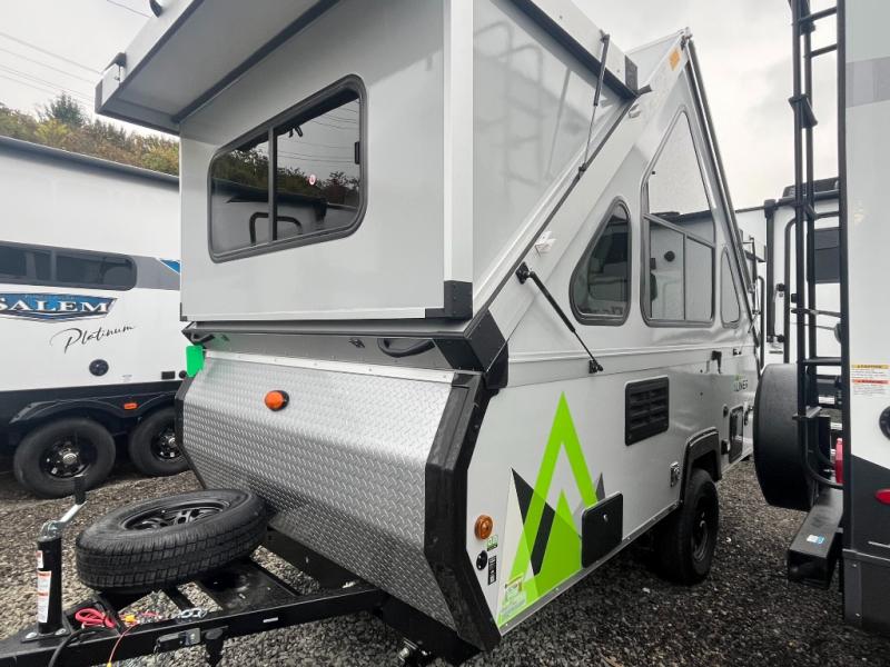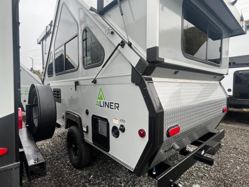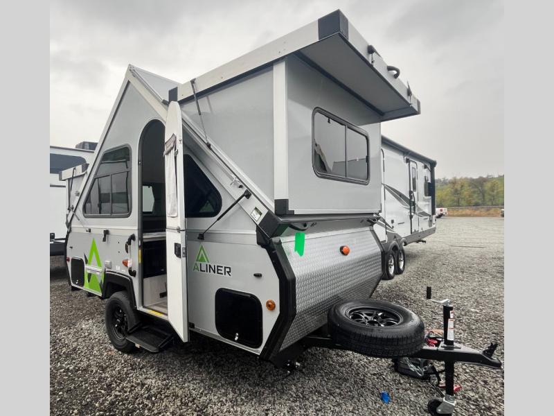 With any Aliner Classic A-frame camper you will find Azdel lightweight, composite interior wall and ceiling panels for added durability and strength. The additional corner windows provide panoramic views, and the hardwood cabinet doors will give these campers a more at-home feel. Four stabilizer jacks come standard, along with an LP connection, an exterior outlet, and an outside shower. It's no wonder these campers are named classic! Choose your model and start camping today!