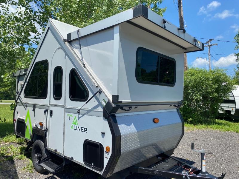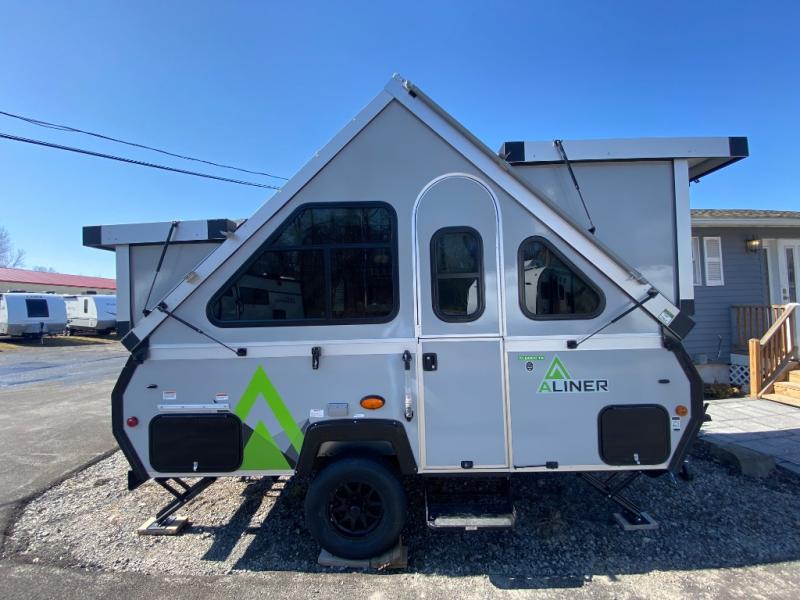 With any Aliner Classic A-frame folding pop-up camper you will find Azdel lightweight, composite interior wall and ceiling panels for added durability and strength. The additional corner windows provide panoramic views, and the hardwood cabinet doors will give these campers a more at-home feel. Four stabilizer jacks come standard, along with dual propane tanks, an exterior outlet, and an outside shower. It's no wonder these campers are named classic! Choose your model and start camping today!