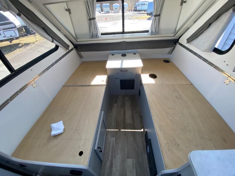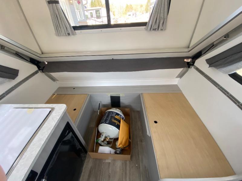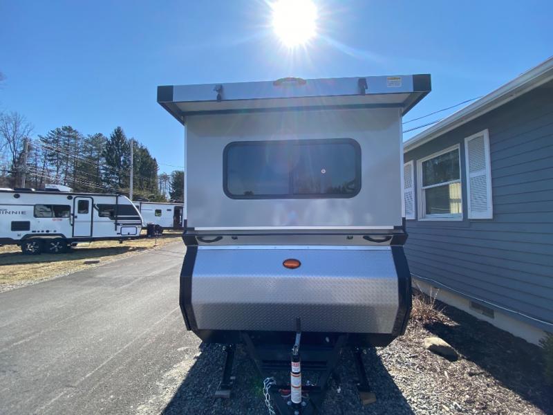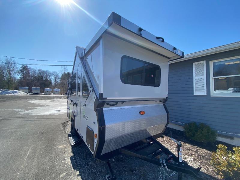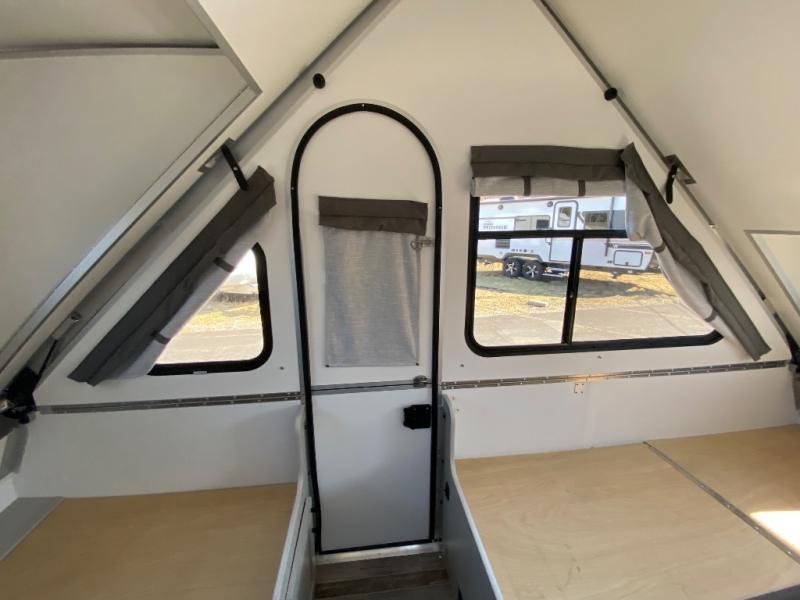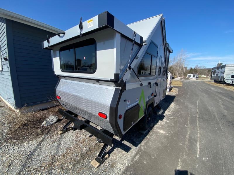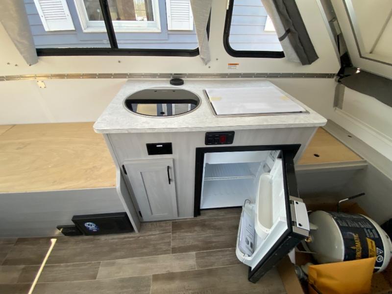 Pack your bags and be on the road in no-time with this lightweight A-frame camper that can sleep three people. You'll enjoy having a 56" x 76" permanent bed with storage underneath for your shoes or bags, and if you have a guest sleep over, they can sleep on the dinette that converts to a 46" x 76" bed. Whip up a hearty lunch on the two burner in/out stove, or use the convenient microwave oven. There is also a 3.0 cu. ft. 2-way refrigerator for perishables and additional storage space for dry goods.