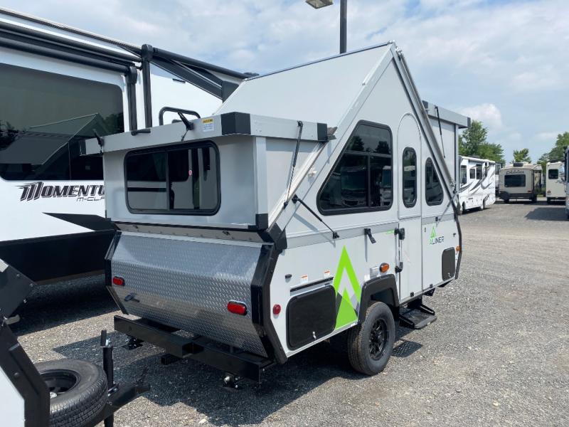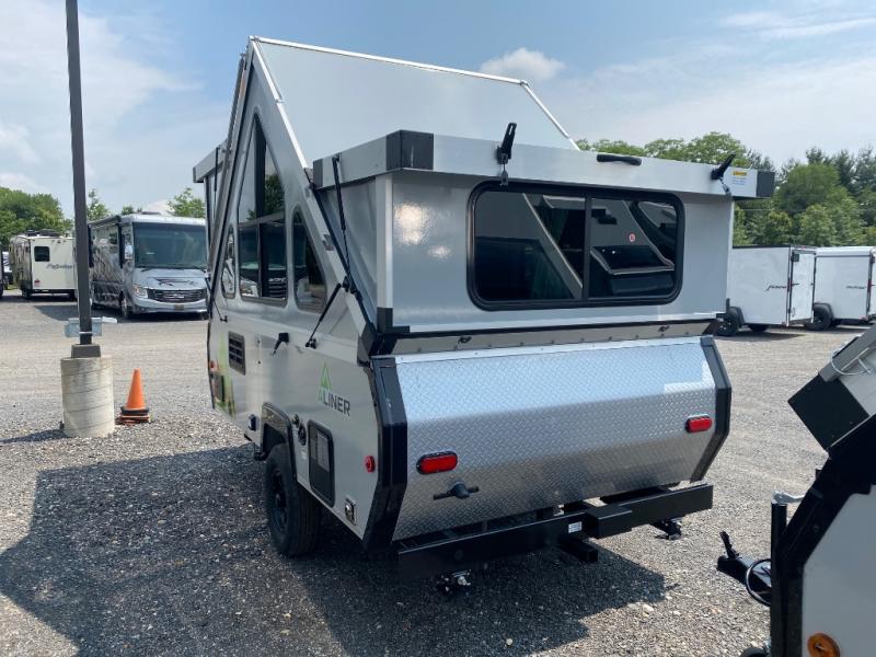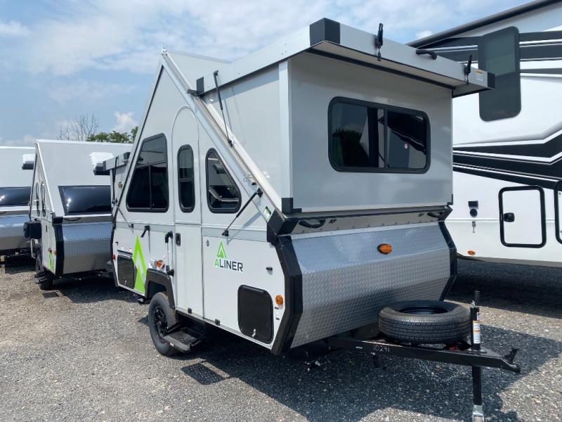 With any Aliner Classic A-frame folding pop-up camper you will find Azdel lightweight, composite interior wall and ceiling panels for added durability and strength. The additional corner windows provide panoramic views, and the hardwood cabinet doors will give these campers a more at-home feel. Four stabilizer jacks come standard, along with an LP connection, an exterior outlet, and an outside shower. It's no wonder these campers are named classic! Choose your model and start camping today!