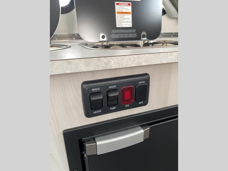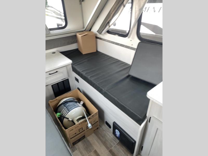 If you enjoy camping with friends or you need your own space at night, this Twin Bed model will do the trick! While two campers take the rear twin beds, the front booth dinette can convert to a 30" x 76" bed for an extra guest, and in the morning you can convert it back to dining space. Whip up breakfast on the two burner stove, or use the convenient microwave oven. There is also a sink to clean up your dishes plus a 3.1 cu. ft. 12V refrigerator to put milk and eggs back in. Don't let this cute A-Frame slip away!