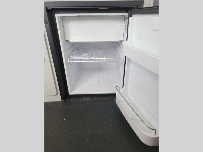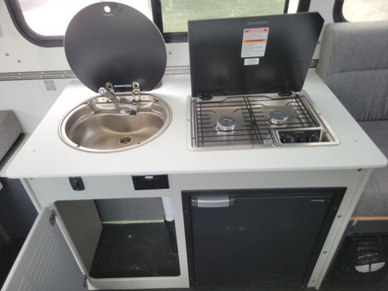 If you're looking for a lightweight camper that can sleep four, take a look at this Evolution 12! There is a sofa bed in the back that will convert to a 56" x 76" bed each night, and the shelves let you store your belongings. The dinette with bed conversion provides a place to dine each day, and a 46" x 76" bed at night. In the morning you can prepare breakfast on the two burner stove, clean up with the flush mount sink, and store cold items in the 3.0 cu. ft. 3-way refrigerator with a freezer. And you can even add an optional outside grill to keep fried food odors outdoors!