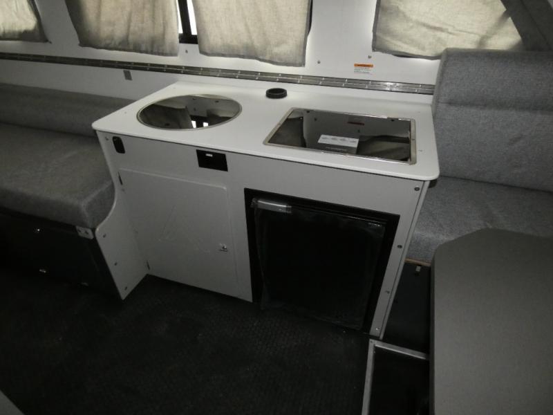 Don't wait another minute; head to the campground in this camper today! There is a two burner cooktop to make lunch on and a 3.0 cu. ft. 3-way refrigerator with a freezer for your cold items. The sofa bed converts to a queen-size bed and the dinette also converts to a queen-size bed or dual bunks. You'll find storage space under the dinette and on the two shelves, and there is a 32" x 32" hidden shower under the dinette so you can clean up each day.