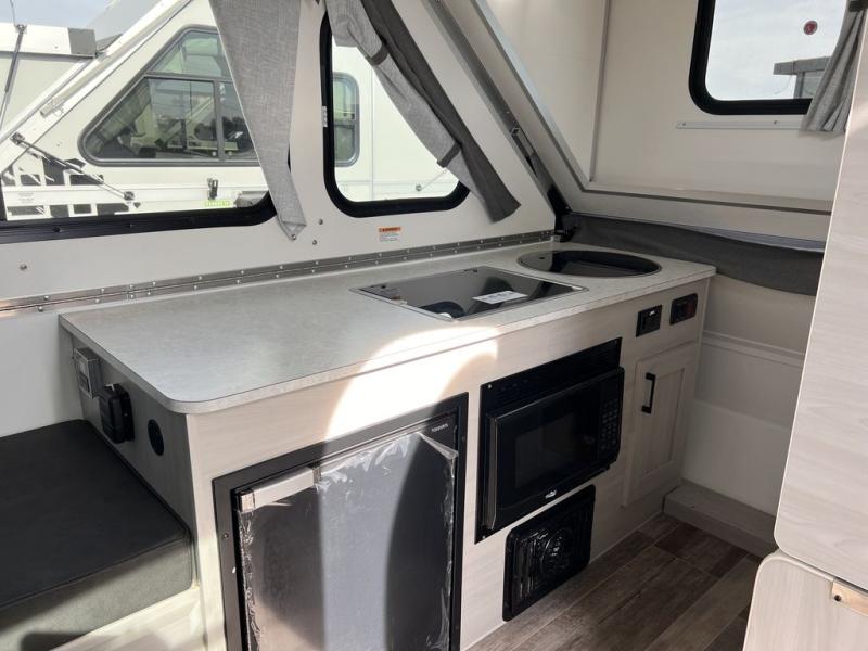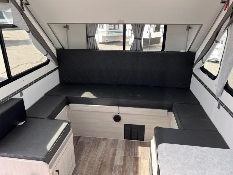 Versatile, comfortable, and convenient indoor living while camping can be found throughout this camper! The shower with a cassette toilet offers convenience and a place to clean up each morning, the 3.1 cu. ft. 12V refrigerator offers cold storage, and the microwave plus two burner stove allows you to make warm meals. Eat your meals while sitting on the sofa bed or at the dinette with two seats. And the sofa bed converts into an 74" x 76" bed for a great night's rest!