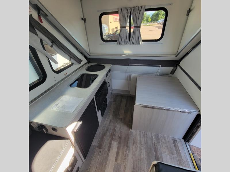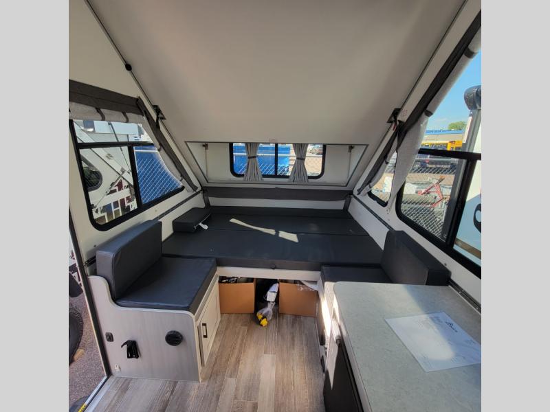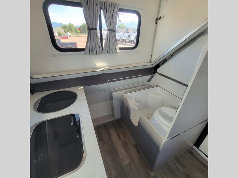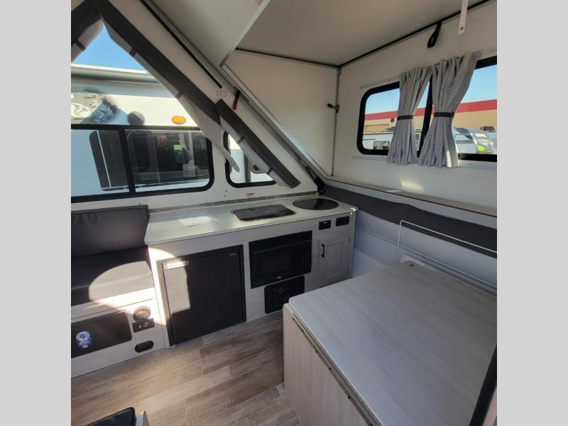 Versatile, comfortable, and convenient indoor living while camping can be found throughout this camper! The built-in shower with a cassette toilet offers convenience and a place to clean up each morning, the 3.0 cu. ft. gas/electric refrigerator offers cold storage, and the microwave plus two burner stove allows you to make warm meals. Eat your meals while sitting on the sofa bed or at the dinette with two seats. And the sofa bed converts into an 80" x 76" bed for a great night's rest!