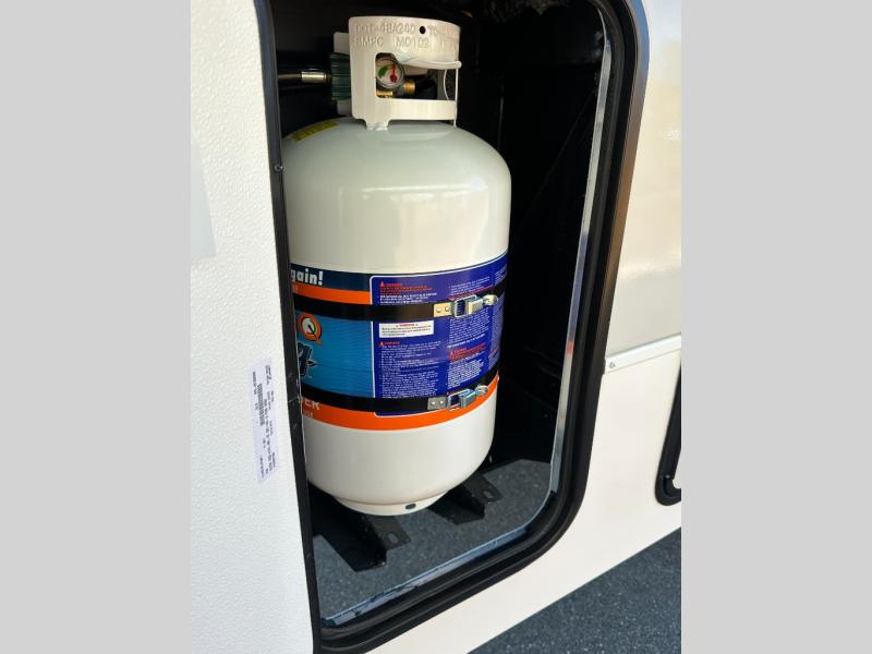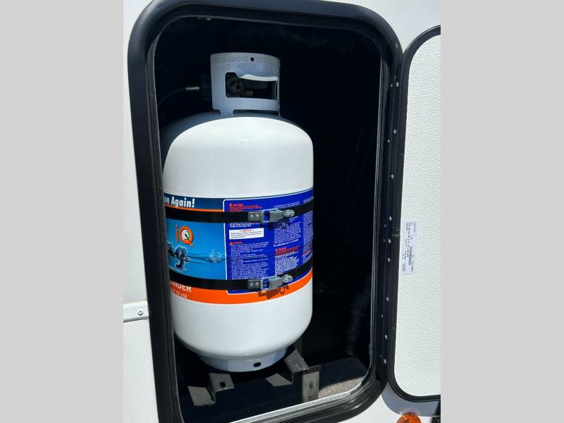 Exterior Features: Two large awnings provide plenty of outdoor shade, and the trailer is equipped with dual 30 lbs. LP tanks to ensure ample fuel for extended stays.