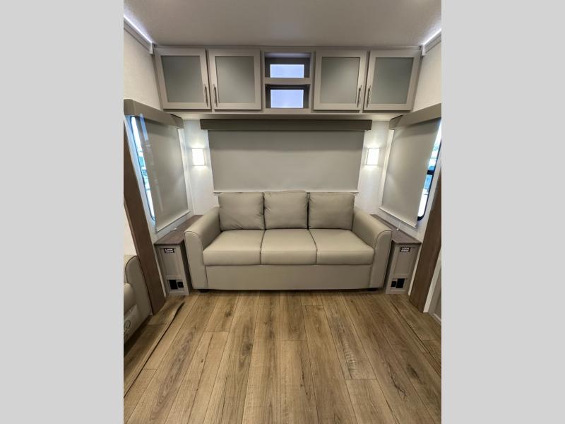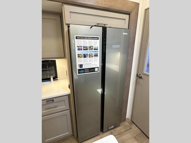 The 2025 Alliance RV Avenue 32RLS is a luxury fifth wheel designed for travelers seeking comfort and convenience on the road. With a length of approximately 35 feet 3 inches and an exterior width of 8 feet 5 inches, it offers a spacious yet manageable size for towing and setting up at your favorite campsites.