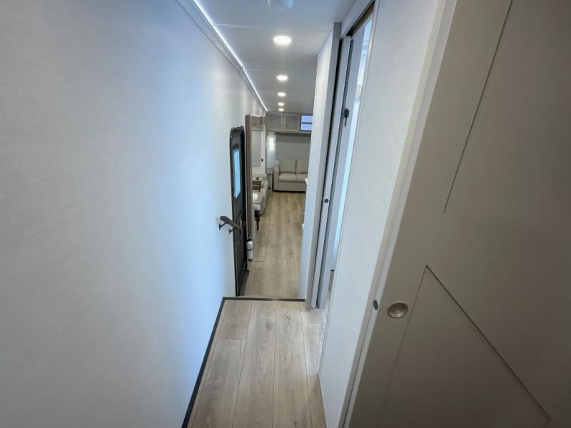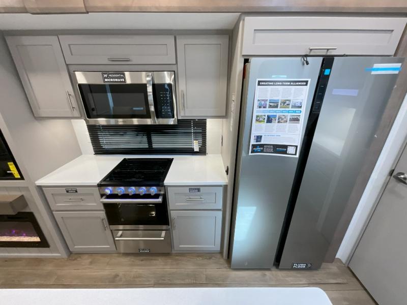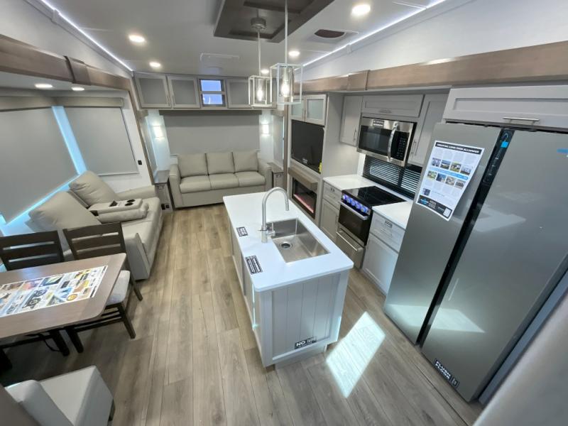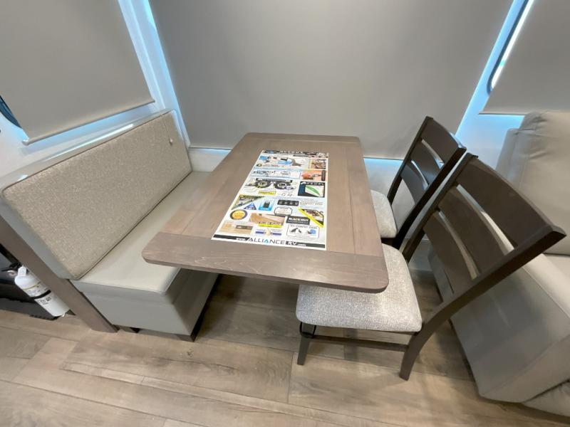 With any Avenue fifth wheel or travel trailer by Alliance RV, you will enjoy more interior space provided by the 8' 5" wide-body construction, and a long list of luxury features. Each is built with Azdel composite sidewalls both inside and out, along with a PVC roof for added strength. There are innovative storage solutions that include hidden storage behind the TV, within end tables and ottomans, and more. Since these units feature no carpet throughout, cleaning will be easier than ever, and there are flush floor slides throughout for seamless living spaces. The Avenue also comes with the OTG Solar Package with a 400 watt solar panel, inverter prep, multiple outlets, and more to keep you charged up!