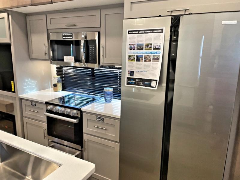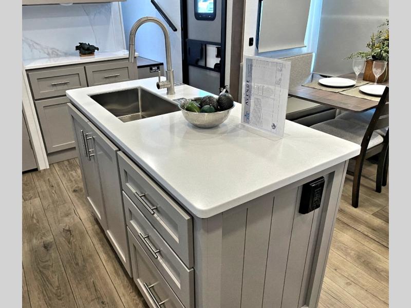 With any Avenue fifth wheel or travel trailer by Alliance RV, you will enjoy more interior space provided by the 8' 5" wide-body construction, and a long list of luxury features. Each is built with Azdel composite sidewalls both inside and out, along with a PVC roof for added strength. There are innovative storage solutions that include hidden storage behind the TV, within end tables and ottomans, and more. Since these units feature no carpet throughout, cleaning will be easier than ever, and there are flush floor slides throughout for seamless living spaces. The Avenue also comes with the OTG Solar Package with a 400 watt solar panel, inverter prep, multiple outlets, and more to keep you charged up!