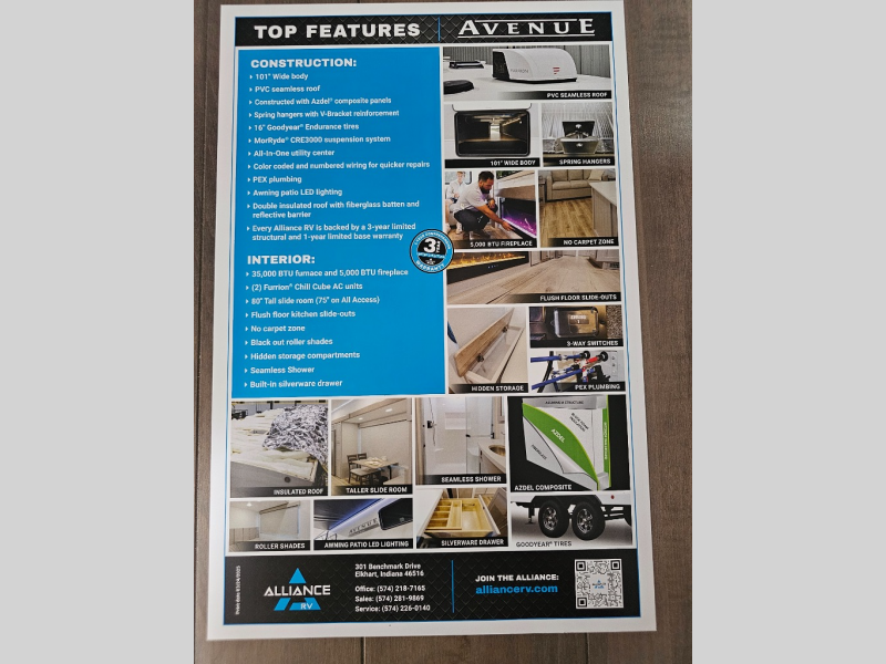 Whether you're enjoying a weekend getaway or full-time RV living, the Avenue 332RL brings the comfort of home wherever you roam. Featuring a wide-body design, upscale finishes, and functional living spaces, this travel trailer delivers everything you need for a premium camping experience.