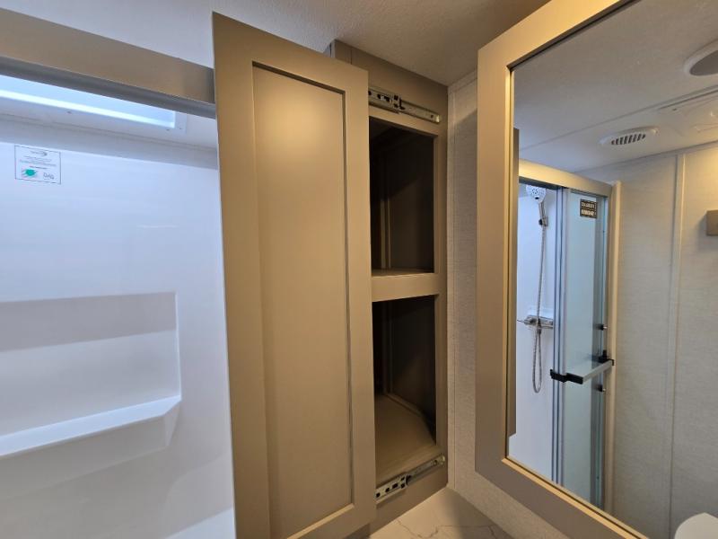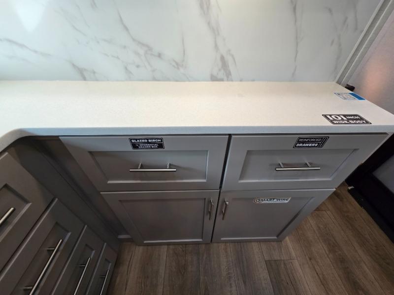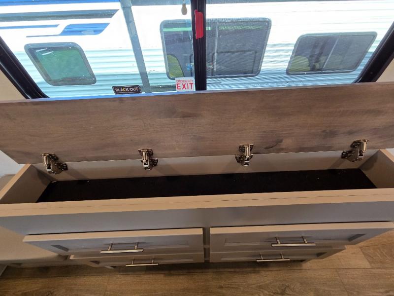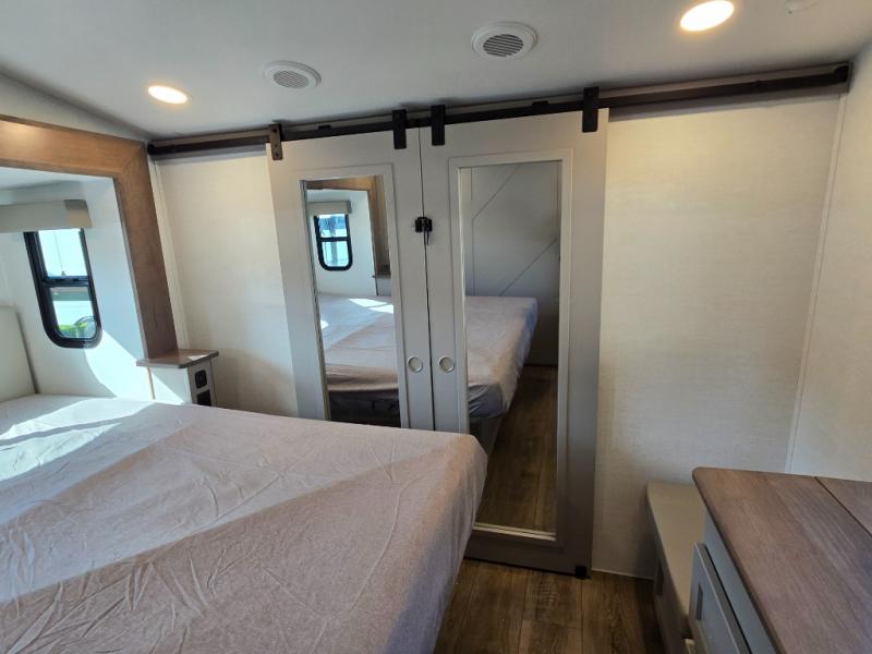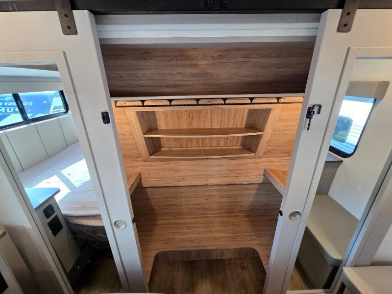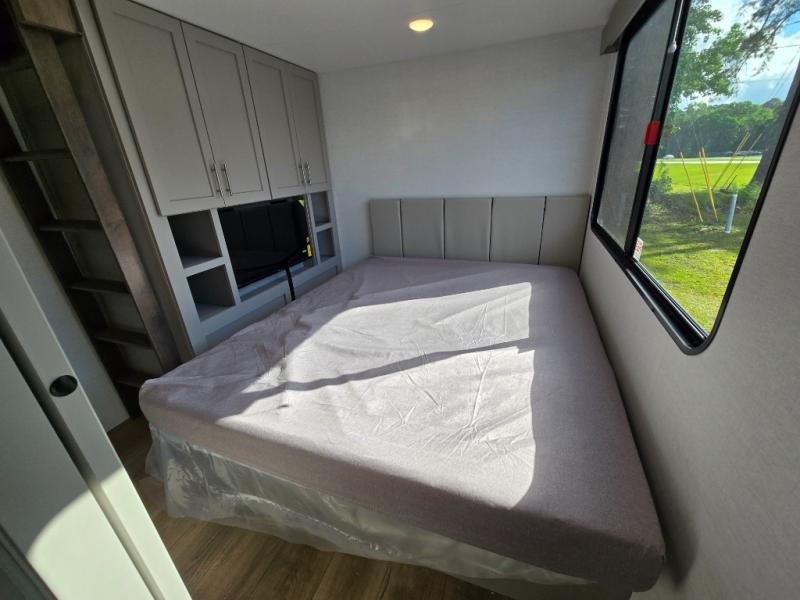 Private Front Bedroom: The master bedroom at the front includes a queen bed (with an optional king upgrade) and ample storage, offering a comfortable retreat.