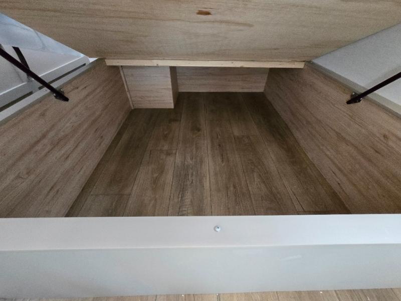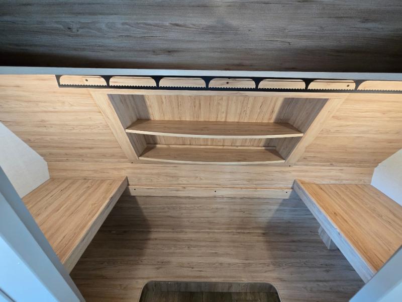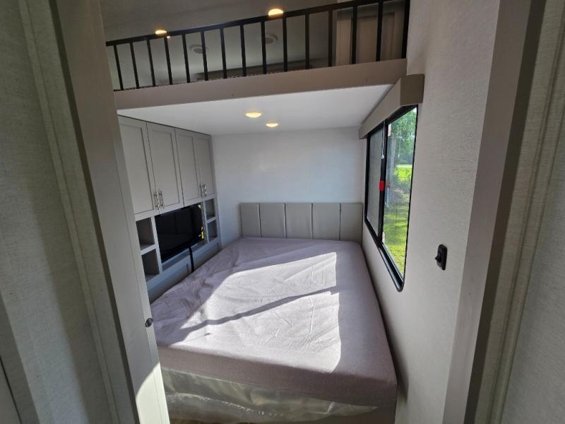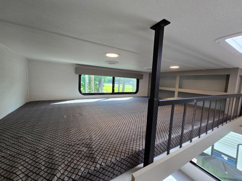 Rear Bedroom with Loft: The rear section features a 60" x 70" bed with a loft overhead, providing additional sleeping space for family members or guests.
