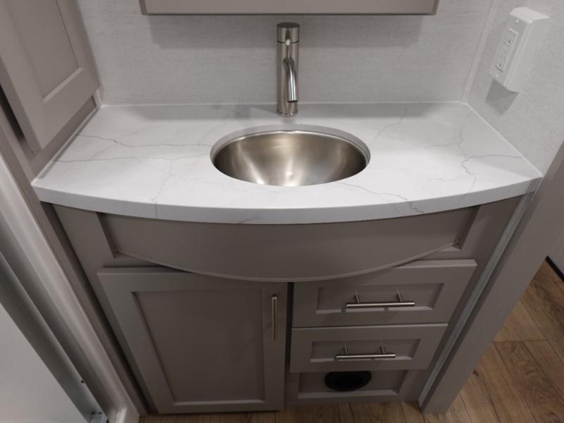 With any Avenue fifth wheel or travel trailer by Alliance RV, you will enjoy more interior space provided by the 8' 5" wide-body construction, and a long list of luxury features. Each is built with Azdel composite sidewalls both inside and out, along with a PVC roof for added strength. There are innovative storage solutions that include hidden storage behind the TV, within end tables and ottomans, and more. Since these units feature no carpet throughout, cleaning will be easier than ever, and there are flush floor slides throughout for seamless living spaces. The Avenue also comes with the OTG Solar Package with a 400 watt solar panel, inverter prep, multiple outlets, and more to keep you charged up!