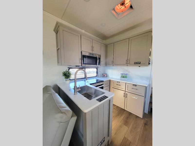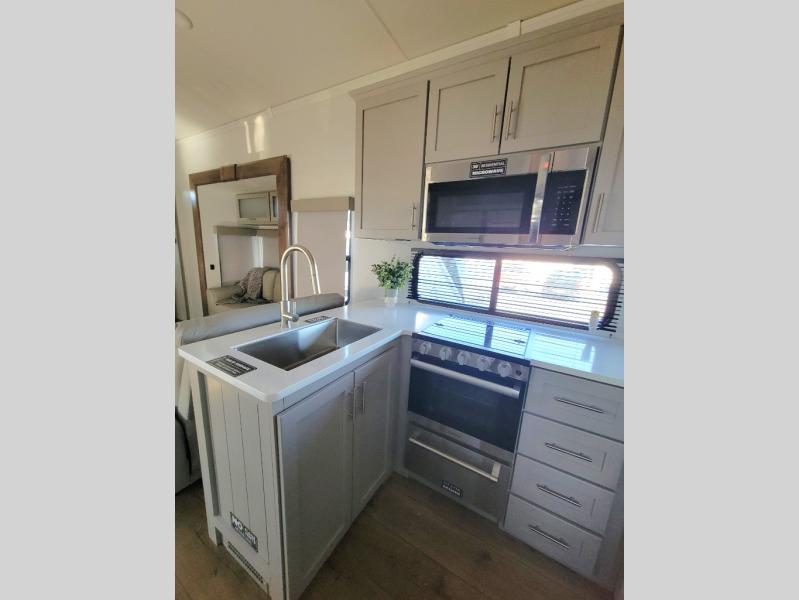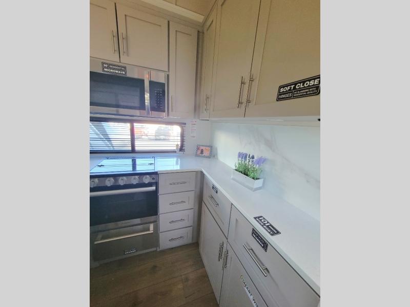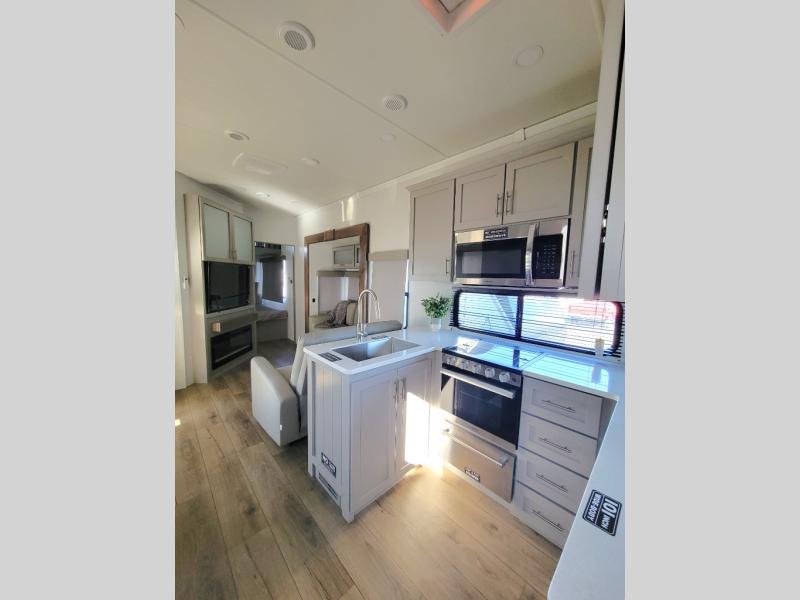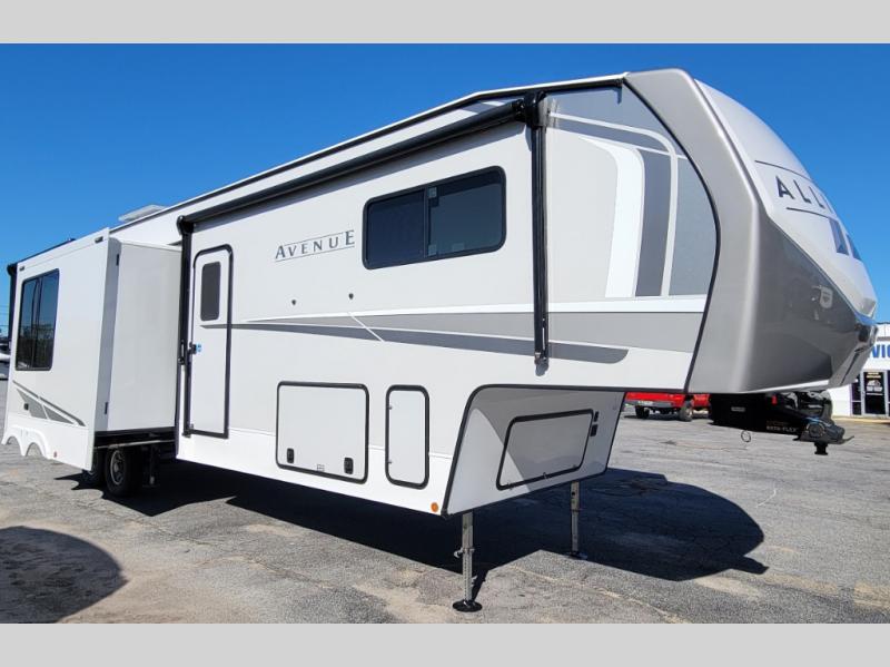 With any Avenue fifth wheel or travel trailer by Alliance RV, you will enjoy more interior space provided by the 8' 5" wide-body construction, and a long list of luxury features. Each is built with Azdel composite sidewalls both inside and out, along with a PVC roof for added strength. There are innovative storage solutions that include hidden storage behind the TV, within end tables and ottomans, and more. Since these units feature no carpet throughout, cleaning will be easier than ever, and there are flush floor slides throughout for seamless living spaces. The Avenue also comes with the OTG Solar Package with a 400 watt solar panel, inverter prep, multiple outlets, and more to keep you charged up!