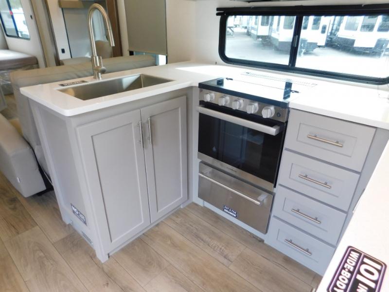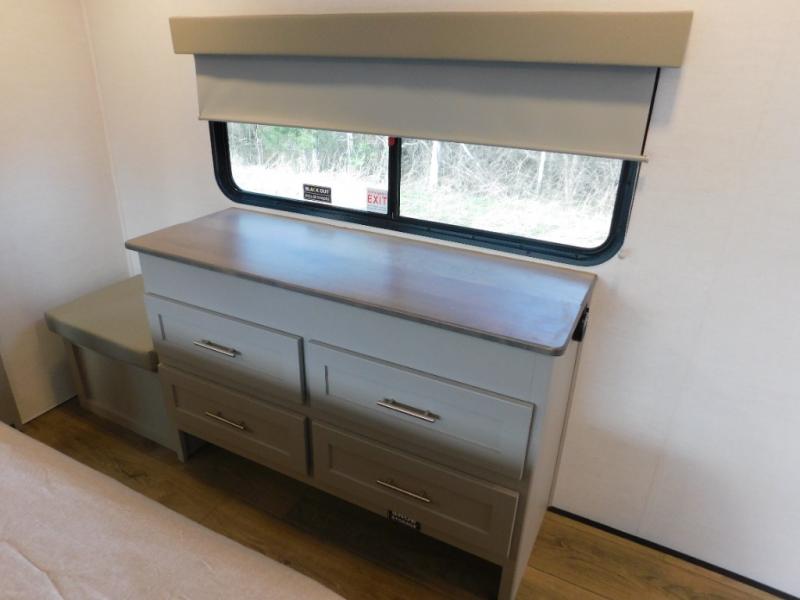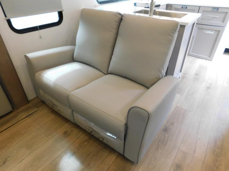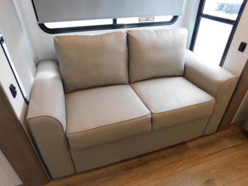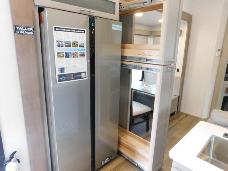 With any Avenue fifth wheel or travel trailer by Alliance RV, you will enjoy more interior space provided by the 8' 5" wide-body construction, and a long list of luxury features. Each is built with Azdel composite sidewalls both inside and out, along with a PVC roof for added strength. There are innovative storage solutions that include hidden storage behind the TV, within end tables and ottomans, and more. Since these units feature no carpet throughout, cleaning will be easier than ever, and there are flush floor slides throughout for seamless living spaces. The Avenue also comes with the OTG Solar Package with a 400 watt solar panel, inverter prep, multiple outlets, and more to keep you charged up!