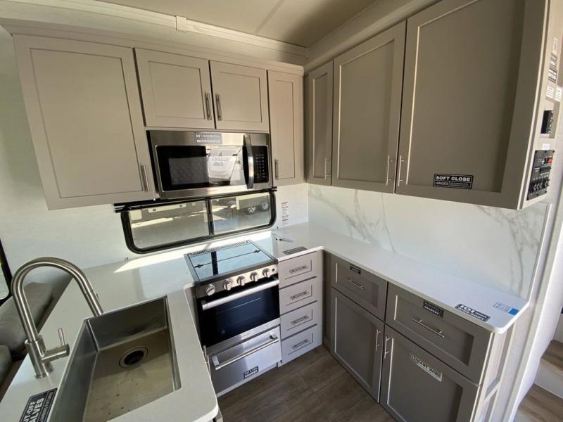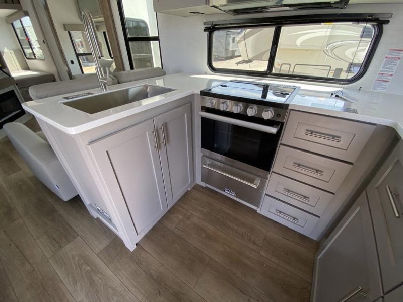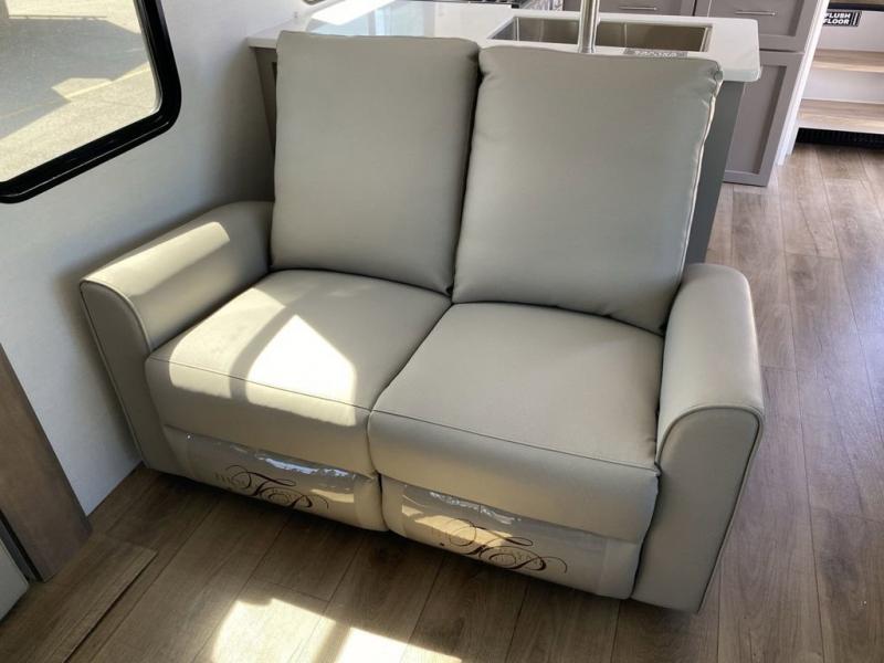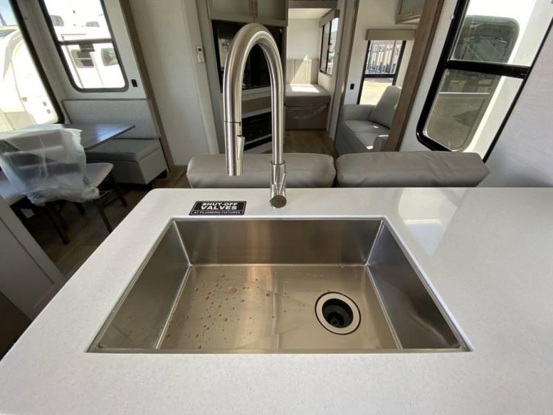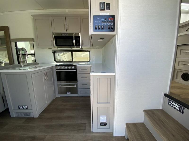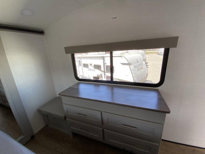 With any Avenue fifth wheel or travel trailer by Alliance RV, you will enjoy more interior space provided by the 8' 5" wide-body construction, and a long list of luxury features. Each is built with Azdel composite sidewalls both inside and out, along with a PVC roof for added strength. There are innovative storage solutions that include hidden storage behind the TV, within end tables and ottomans, and more. Since these units feature no carpet throughout, cleaning will be easier than ever, and there are flush floor slides throughout for seamless living spaces. The Avenue also comes with the OTG Solar Package with a 400 watt solar panel, inverter prep, multiple outlets, and more to keep you charged up!