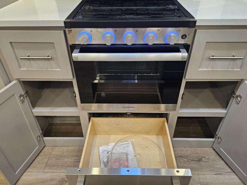 16 cu. ft. 12V refrigerator and dual pantries for maximum food storage