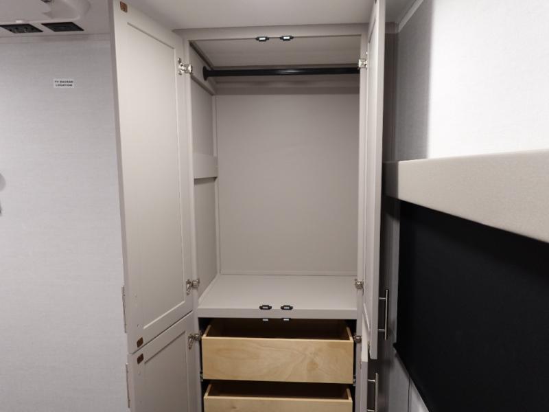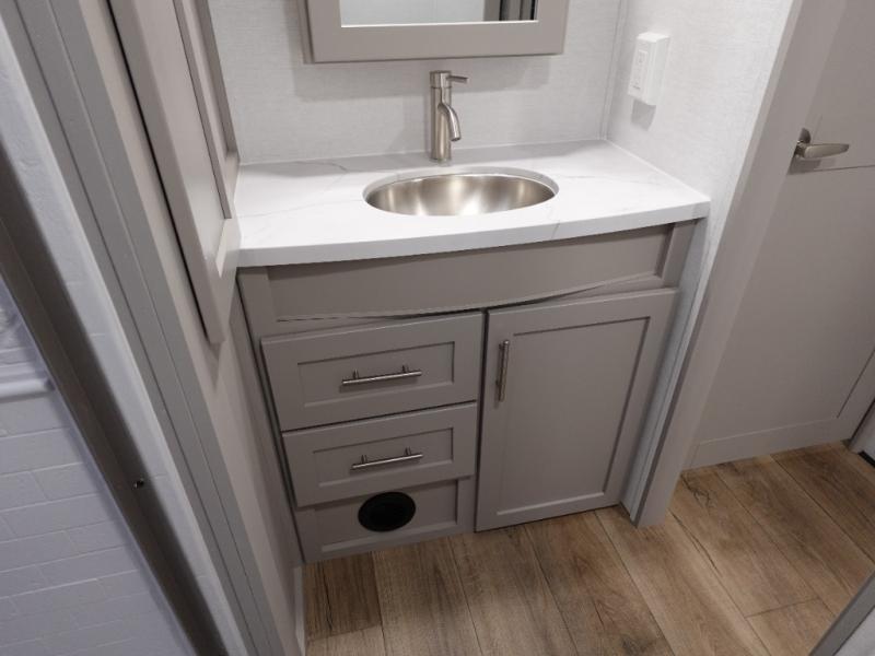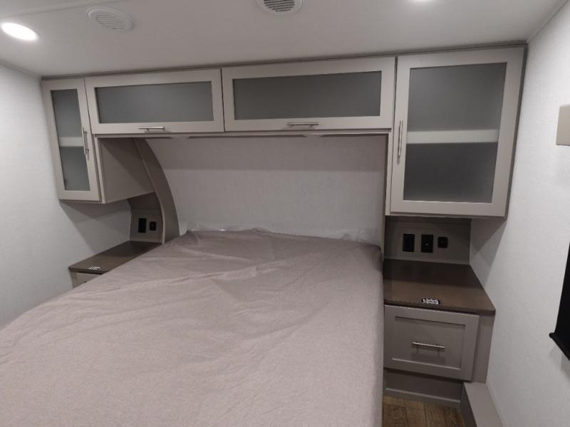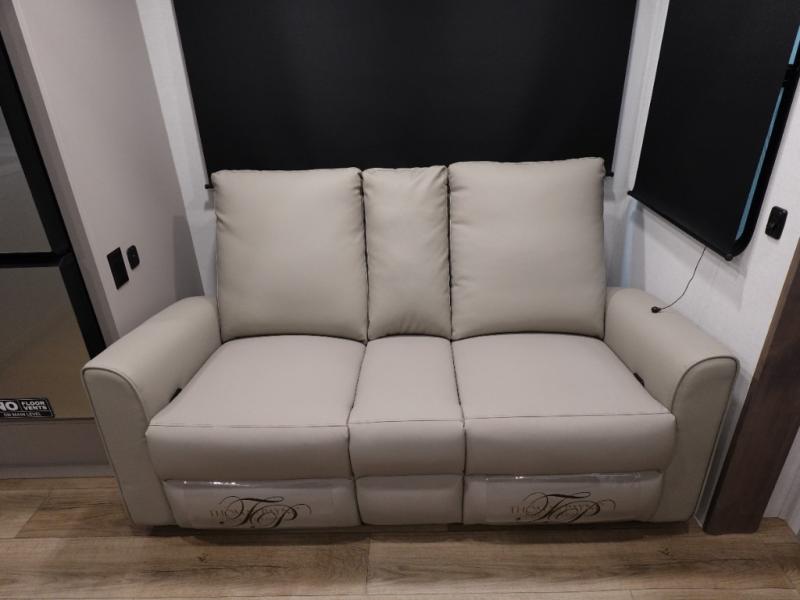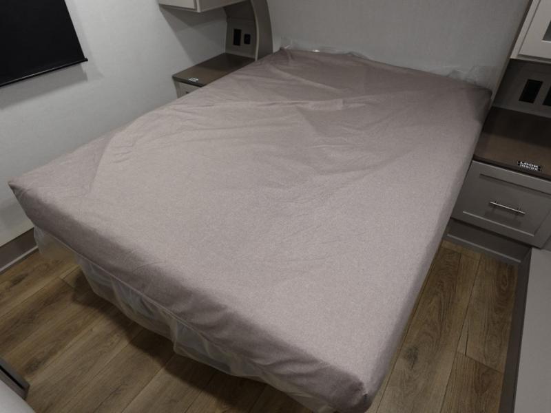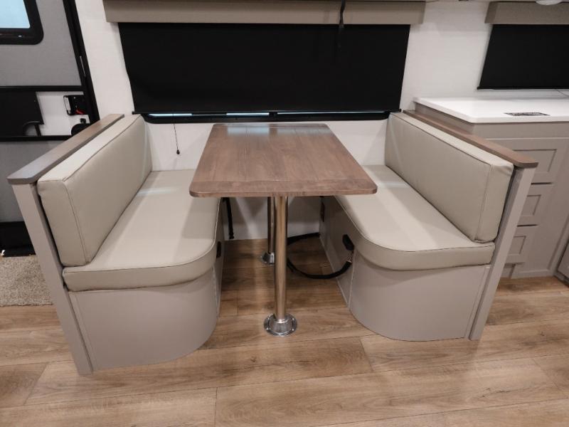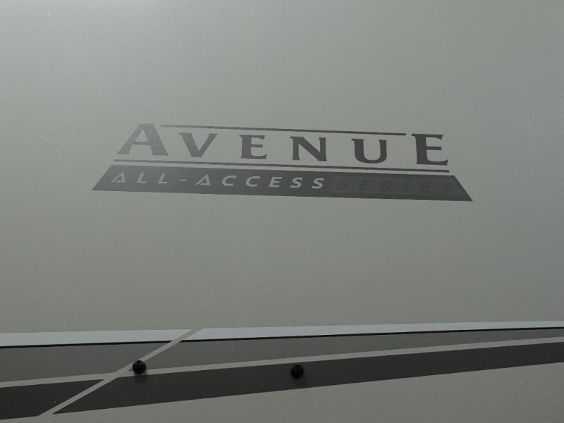 A benchmark chassis creates a space saver upper deck with each one of these Avenue All-Access fifth wheels by Alliance RV! The 101 in. wide-body construction gives you more room to walk around and the flush slide out floors throughout prevent any tripping. There are Azdel composite sidewalls inside and out, and a seamless fully walkable PVC roof for extreme durability and zero maintenance. You are sure to love no carpet throughout making each Avenue All-Access easy to clean and allergen free, not to mention pet friendly. You can maximize your space throughout with innovative storage solutions like the hidden storage behind the TV, inside the end tables, ottoman, and dinette chairs. These units also include the OTG Solar Package with a 200 watt solar panel, 15 amp MPPT charger, multiple outlets, and more to keep you powered up!