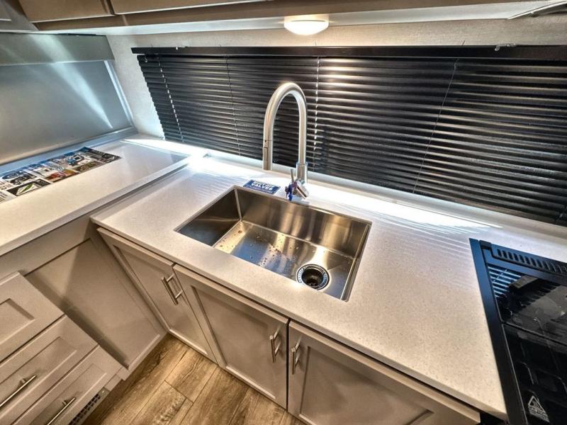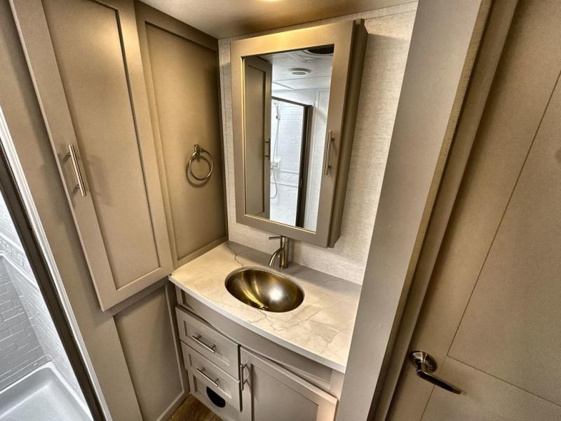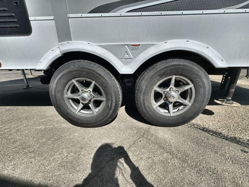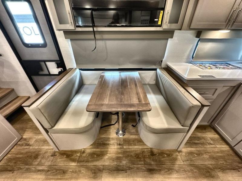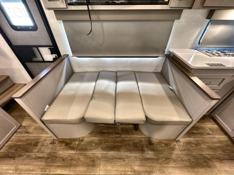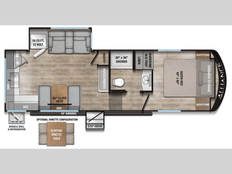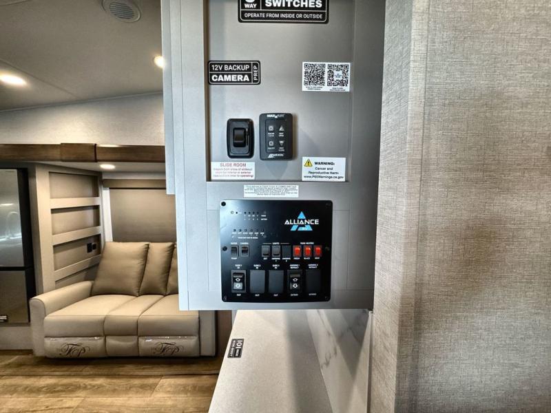 A benchmark chassis creates a space saver upper deck with each one of these Avenue All-Access fifth wheels by Alliance RV! The 101 in. wide-body construction gives you more room to walk around and the flush slide out floors throughout prevent any tripping. There are Azdel composite sidewalls inside and out, and a seamless fully walkable PVC roof for extreme durability and zero maintenance. You are sure to love no carpet throughout making each Avenue All-Access easy to clean and allergen free, not to mention pet friendly. You can maximize your space throughout with innovative storage solutions like the hidden storage behind the TV, inside the end tables, ottoman, and dinette chairs. These units also include the OTG Solar Package with a 200 watt solar panel, 15 amp MPPT charger, multiple outlets, and more to keep you powered up!