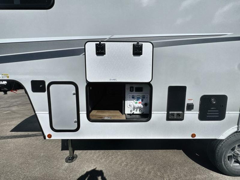 This fifth wheel is ready for adventure when you are! Once you arrive at the campground, you can put out the 16' awning, then start lunch on the exterior griddle. A booth dinette and theater sofa provide seating space inside, and there is a 50" Class HDTV to enjoy movies. The chef will also love the interior kitchen with its ample counter space, and there is plenty of storage with a hutch/pantry, second pantry, and 10 cu. ft. 12V refrigerator. Freshen up in the full bath before heading off to bed in the front private bedroom. Here, you'll find a queen bed, dual nightstands and overhead storage, plus a wardrobe with washer and dryer prep if you choose to add those appliances!
