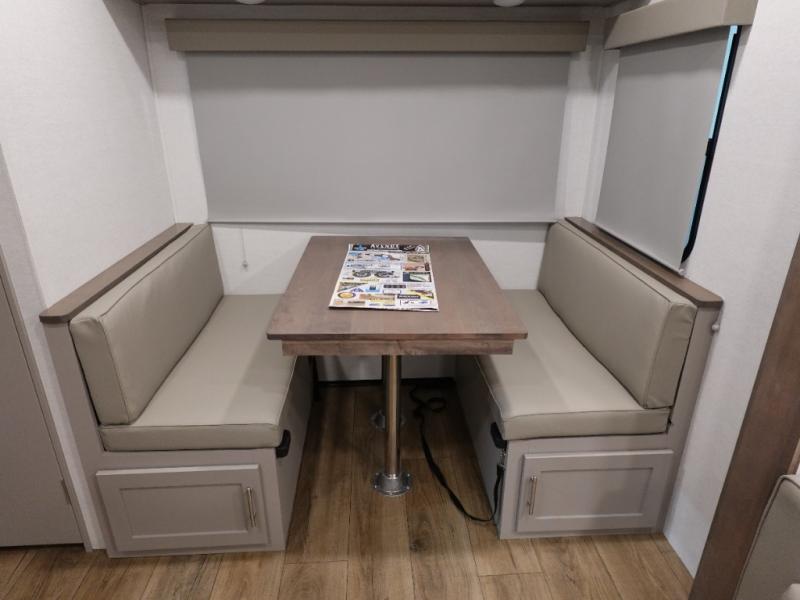 A benchmark chassis creates a space saver upper deck with each one of these Avenue All-Access fifth wheels by Alliance RV! The 101 in. wide-body construction gives you more room to walk around and the flush slide out floors throughout prevent any tripping. There are Azdel composite sidewalls inside and out, and a seamless fully walkable PVC roof for extreme durability and zero maintenance. You are sure to love the "no carpet zone" making each Avenue easy to clean and allergen free, not to mention pet friendly. You can maximize your space throughout with innovative storage solutions like the hidden storage behind the TV, inside the end tables, ottoman, and dinette chairs. These units also include the OTG Solar Package with a 200 watt solar panel, 15 amp MPPT charger, multiple outlets, and more to keep you powered up!