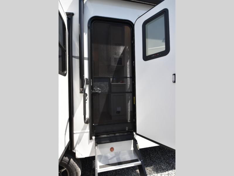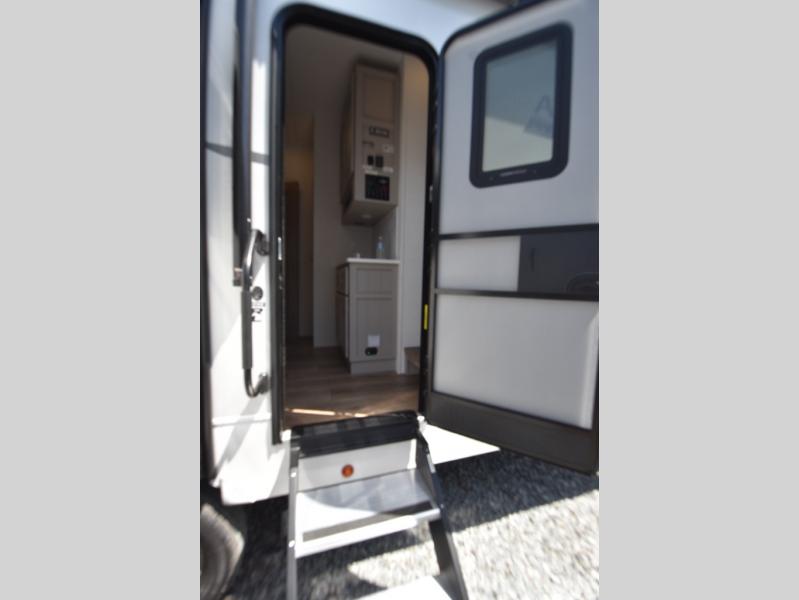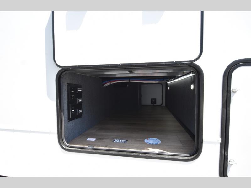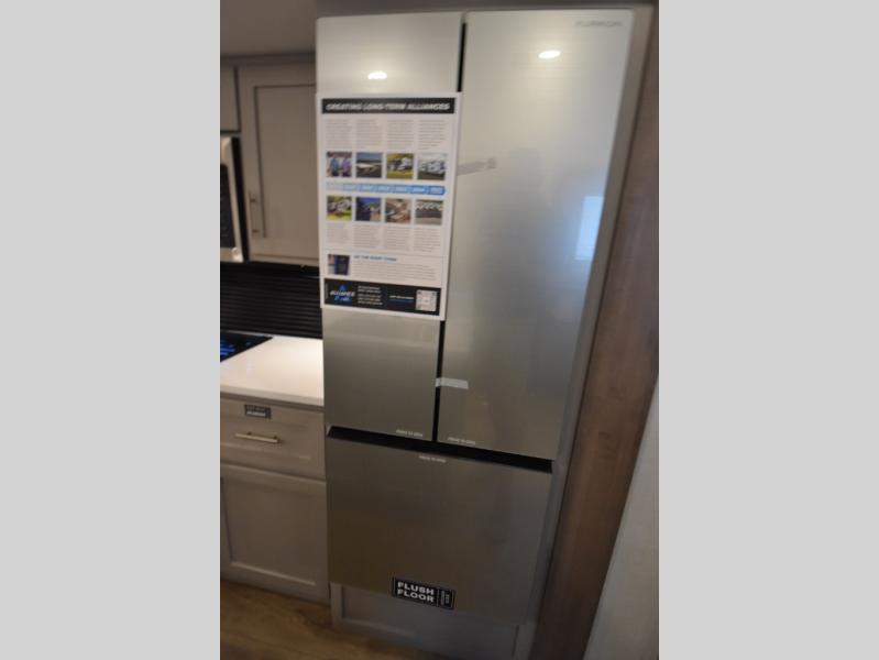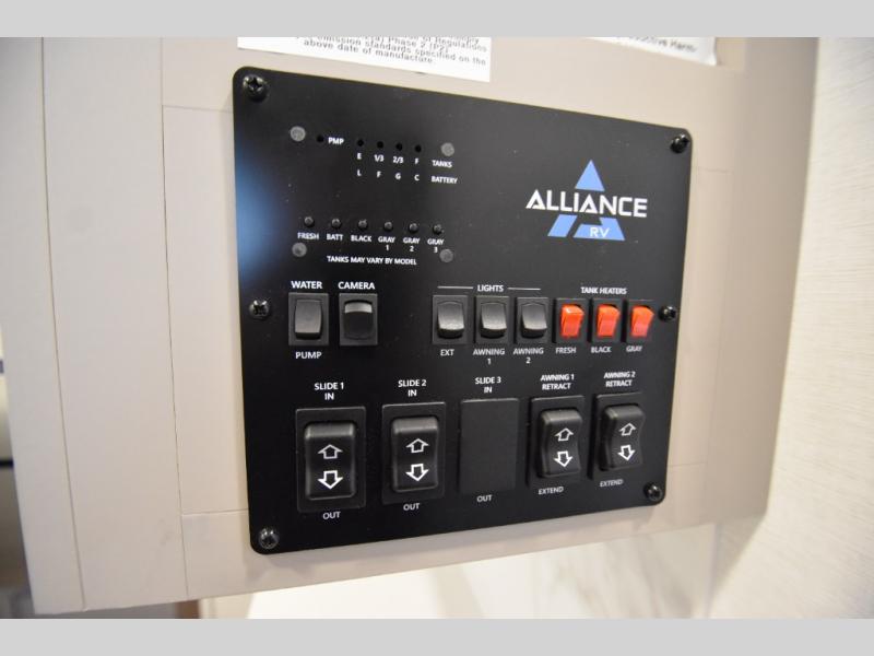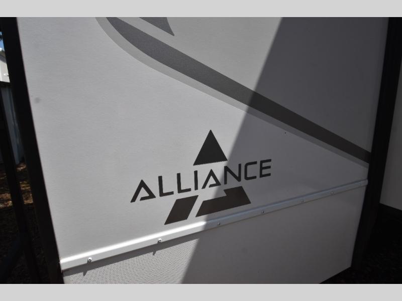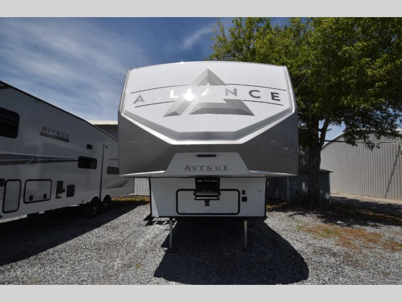 A benchmark chassis creates a space saver upper deck with each one of these Avenue All-Access fifth wheels by Alliance RV! The 101 in. wide-body construction gives you more room to walk around and the flush slide out floors throughout prevent any tripping. There are Azdel composite sidewalls inside and out, and a seamless fully walkable PVC roof for extreme durability and zero maintenance. You are sure to love the "no carpet zone" making each Avenue easy to clean and allergen free, not to mention pet friendly. You can maximize your space throughout with innovative storage solutions like the hidden storage behind the TV, inside the end tables, ottoman, and dinette chairs. These units also include the OTG Solar Package with a 200 watt solar panel, 15 amp MPPT charger, multiple outlets, and more to keep you powered up!