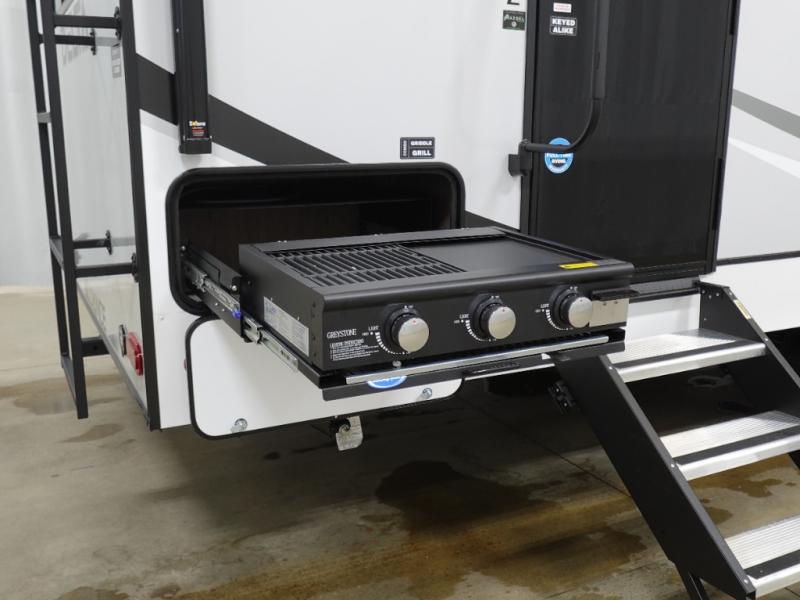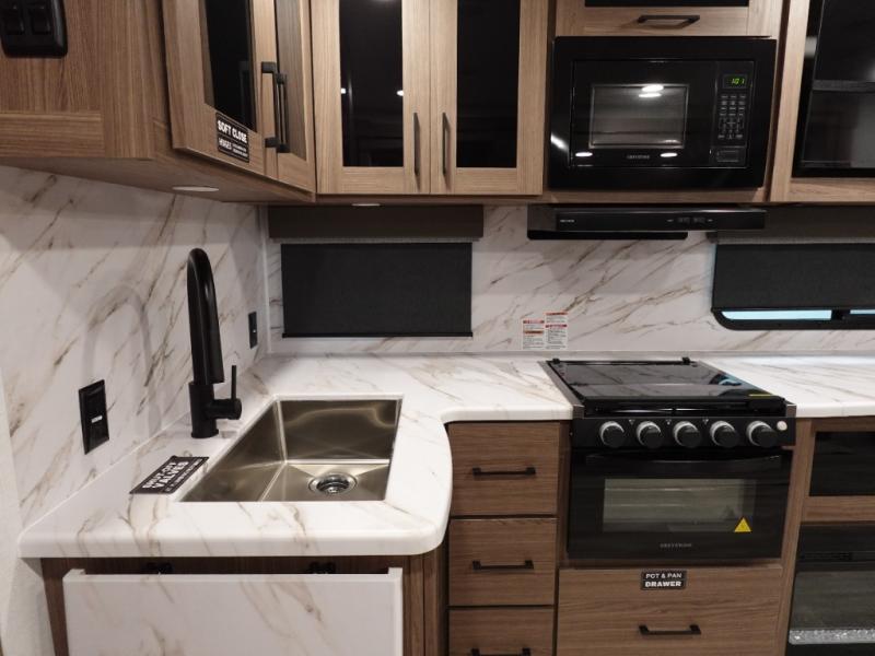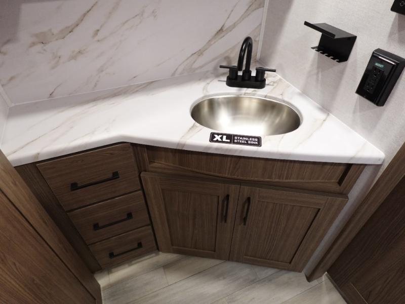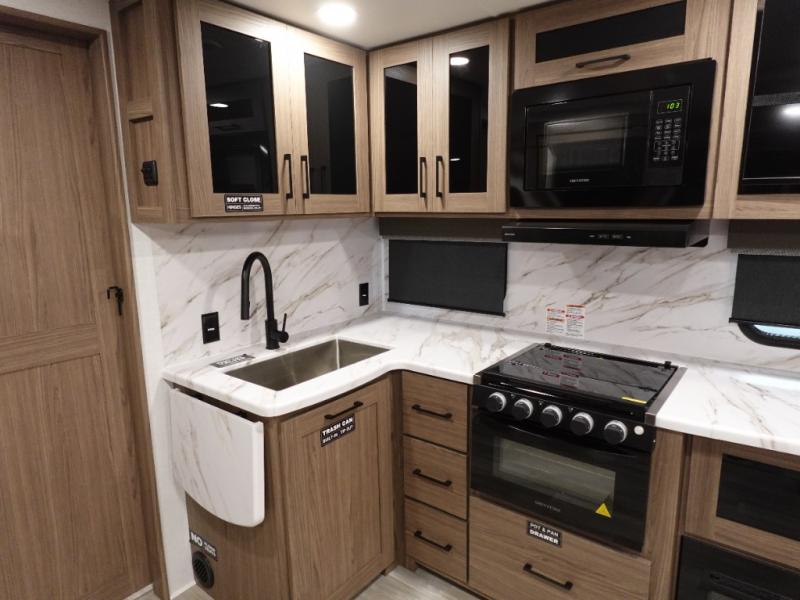Form and function works together with every one of these Alliance RV Delta travel trailers! They are built with a walk-on roof with a seamless PVC roof covering, Mylar reinforced exterior seals, and a heated and enclosed underbelly to protect your unit in all seasons. The commercial grade vinyl flooring will be easy to clean and the oversized atrium windows throughout let in plenty of natural sunlight. With 62 cu. ft. of drop frame pass-through storage, you can bring along all of your essential camping gear plus it has USB charging for more convenience. There are many at home interior conveniences including a Bluetooth speaker, USB charging throughout, and even a pull-out kitchen trash can. Come find your favorite model today!