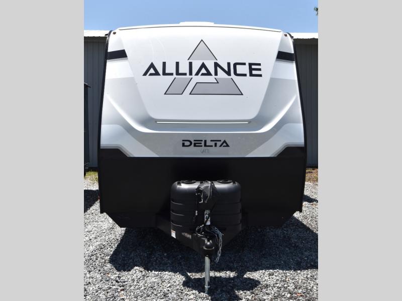 Form and function works together with every one of these Alliance RV Delta travel trailers! They are built with a walk-on roof with a seamless PVC roof covering, Mylar reinforced exterior seals, and a heated and enclosed underbelly to protect your unit in all seasons. The commercial grade vinyl flooring will be easy to clean and the oversized atrium windows throughout let in plenty of natural sunlight. With 62 cu. ft. of drop frame pass-through storage, you can bring along all of your essential camping gear plus it has USB charging for more convenience. There are many at home interior conveniences including a Bluetooth speaker, USB charging throughout, and even a pull-out kitchen trash can. Come find your favorite model today!