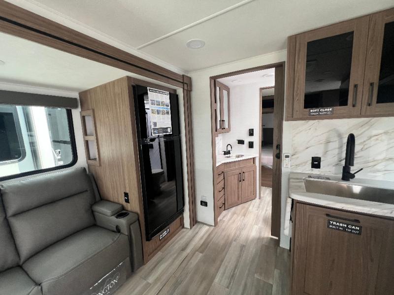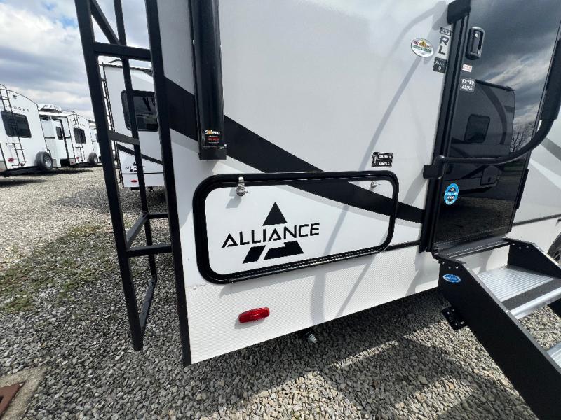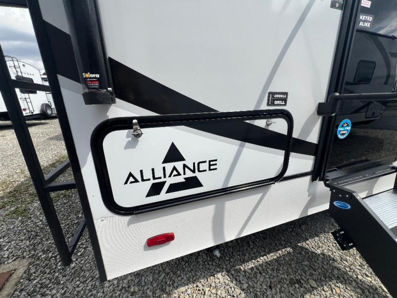 Form and function works together with every one of these Alliance RV Delta travel trailers! They are built with a walk-on roof with a seamless PVC roof covering, Mylar reinforced exterior seals, and a heated and enclosed underbelly to protect your unit in all seasons. The commercial grade vinyl flooring will be easy to clean and the oversized atrium windows throughout let in plenty of natural sunlight. With 62 cu. ft. of drop frame pass-through storage, you can bring along all of your essential camping gear plus it has USB charging for more convenience. There are many at home interior conveniences including a Bluetooth speaker, USB charging throughout, and even a pull-out kitchen trash can. Come find your favorite model today!