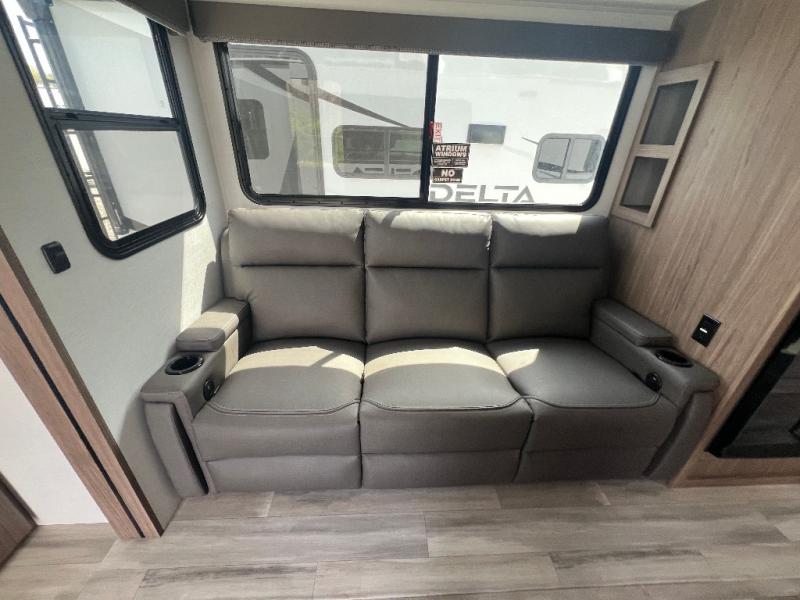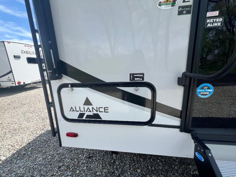 Form and function works together with every one of these Alliance RV Delta travel trailers! They are built with a walk-on roof with a seamless PVC roof covering, Mylar reinforced exterior seals, and a heated and enclosed underbelly to protect your unit in all seasons. The commercial grade vinyl flooring will be easy to clean and the oversized atrium windows throughout let in plenty of natural sunlight. With 62 cu. ft. of drop frame pass-through storage, you can bring along all of your essential camping gear plus it has USB charging for more convenience. There are many at home interior conveniences including a Bluetooth speaker, USB charging throughout, and even a pull-out kitchen trash can. Come find your favorite model today!