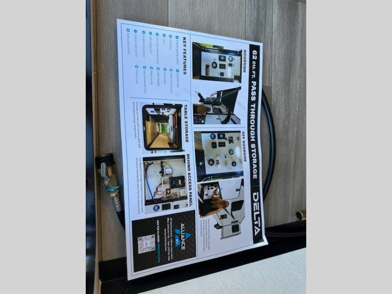 Form and function works together with every one of these Alliance RV Delta travel trailers! They are built with a walk-on roof with a seamless PVC roof covering, Mylar reinforced exterior seals, and a heated and enclosed underbelly to protect your unit in all seasons. The commercial grade vinyl flooring will be easy to clean and the oversized atrium windows throughout let in plenty of natural sunlight. With 62 cu. ft. of drop frame pass-through storage, you can bring along all of your essential camping gear plus it has USB charging for more convenience. There are many at home interior conveniences including a Bluetooth speaker, USB charging throughout, and even a pull-out kitchen trash can. Come find your favorite model today!