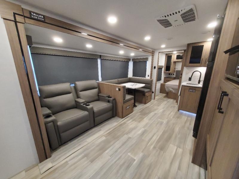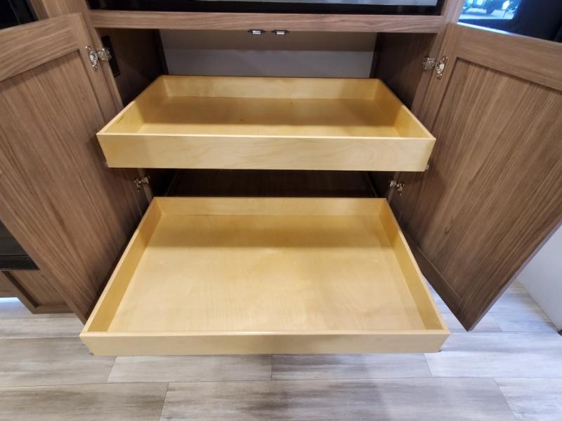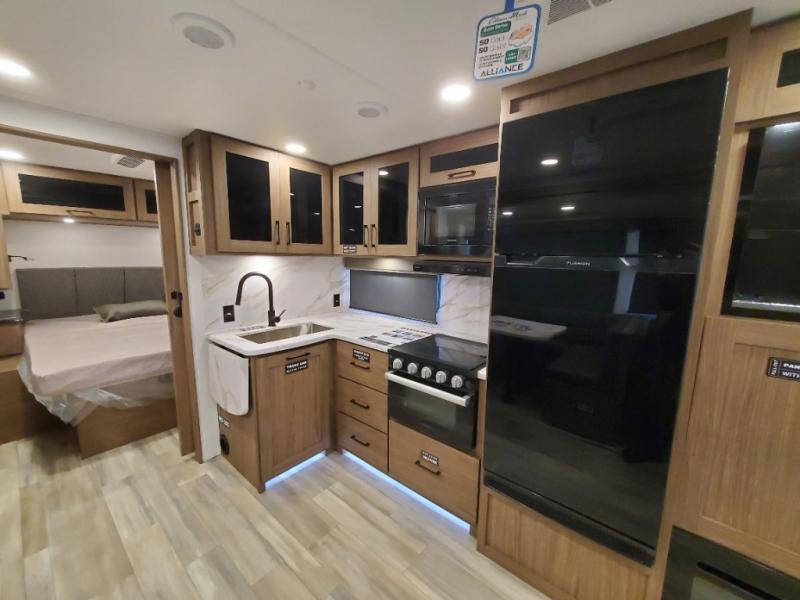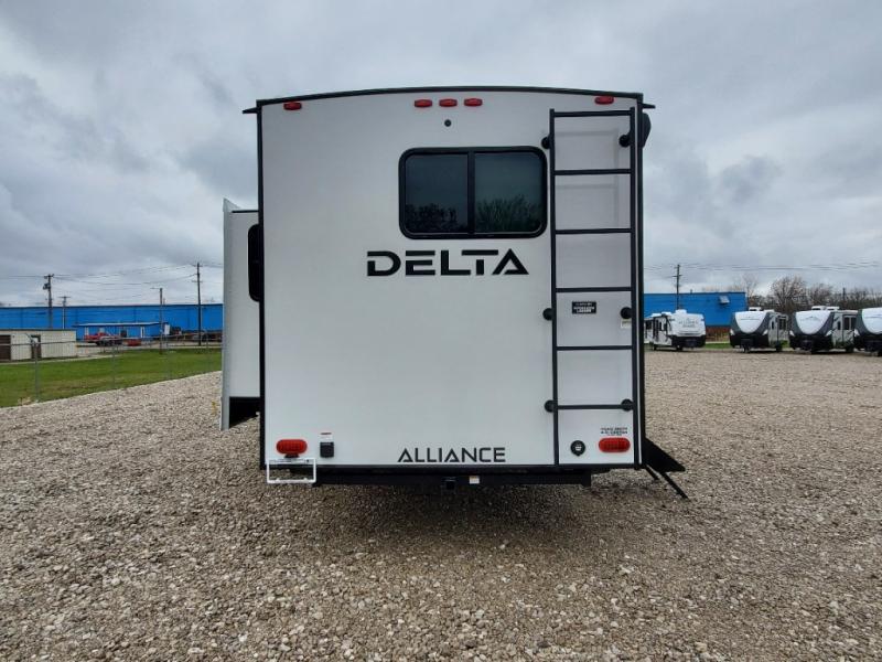 Form and function works together with every one of these Alliance RV Delta travel trailers! They are built with a walk-on roof with a seamless PVC roof covering, Mylar reinforced exterior seals, and a heated and enclosed underbelly to protect your unit in all seasons. The commercial grade vinyl flooring will be easy to clean and the oversized atrium windows throughout let in plenty of natural sunlight. With 62 cu. ft. of drop frame pass-through storage, you can bring along all of your essential camping gear plus it has USB charging for more convenience. There are many at home interior conveniences including a Bluetooth speaker, USB charging throughout, and even a pull-out kitchen trash can. Come find your favorite model today!
