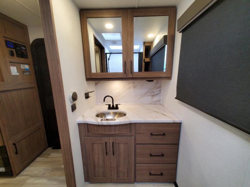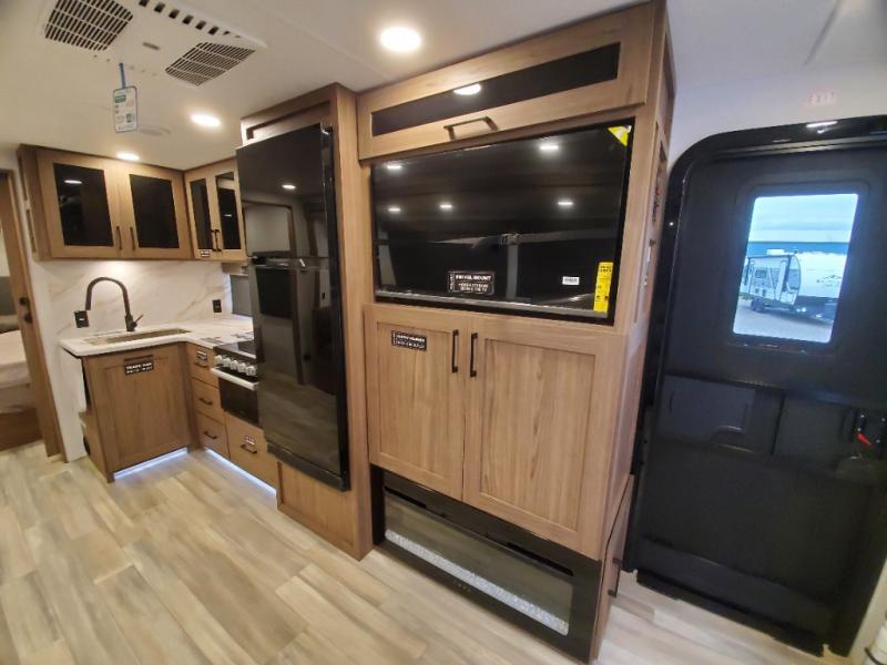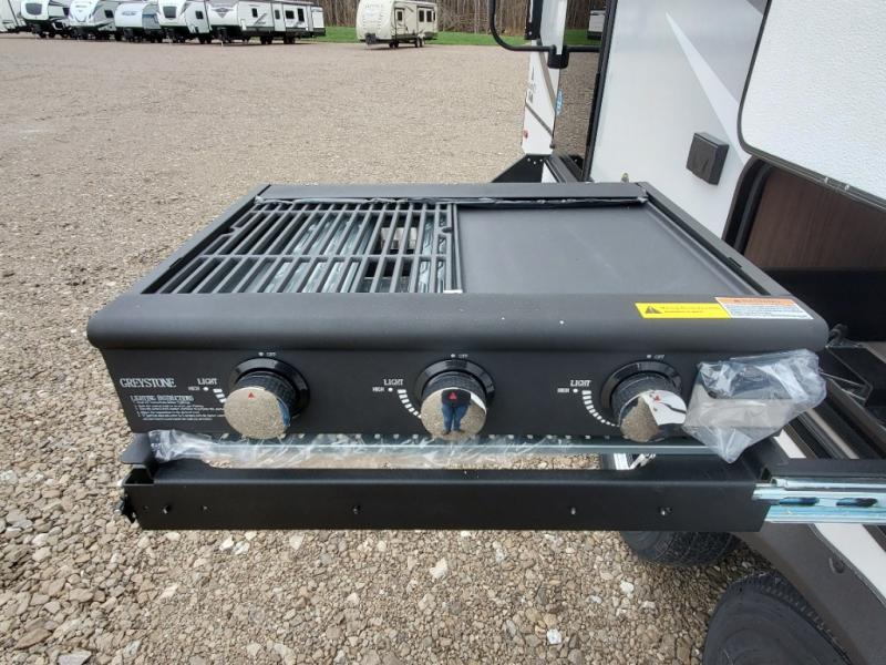 You will love all of your adventures with this Delta travel trailer in tow! This unit is perfect for a couple or even a family of four or six with a queen bed in the front private bedroom, and also using the sofa and U-shaped dinette once converted for more sleeping space. The U-shaped dinette is great for gathering for meals, a board game or game of cards, and the sofa is directly opposite a 40" HDTV which makes viewing enjoyable. You can easily prepare all of your favorite meals and snacks with the kitchen amenities provided inside. A three burner range allows you to easily cook indoors, or you can cook outside using the outdoor griddle/grill if you like. There is a 10 cu. ft. 12V refrigerator to keep all of your perishables and drinks nice and cold, plus a large sink for dishes and cleaning up, and a convenient pull-out trash can and flip-up counter extension as well. You will also appreciate the full rear bath featuring a 30" x 36" shower, toilet, vanity with sink, and linen cabinet for your towels and toiletries.
