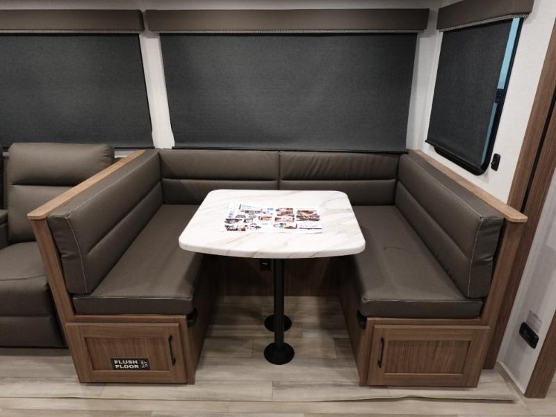 Form and function works together with every one of these Alliance RV Delta travel trailers! They are built with a walk-on roof with a seamless PVC roof covering, Mylar reinforced exterior seals, and a heated and enclosed underbelly to protect your unit in all seasons. The commercial grade vinyl flooring will be easy to clean and the oversized atrium windows throughout let in plenty of natural sunlight. With 62 cu. ft. of drop frame pass-through storage, you can bring along all of your essential camping gear plus it has USB charging for more convenience. There are many at home interior conveniences including a Bluetooth speaker, USB charging throughout, and even a pull-out kitchen trash can. Come find your favorite model today!