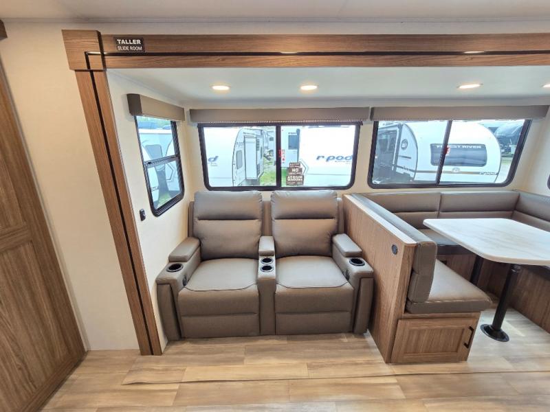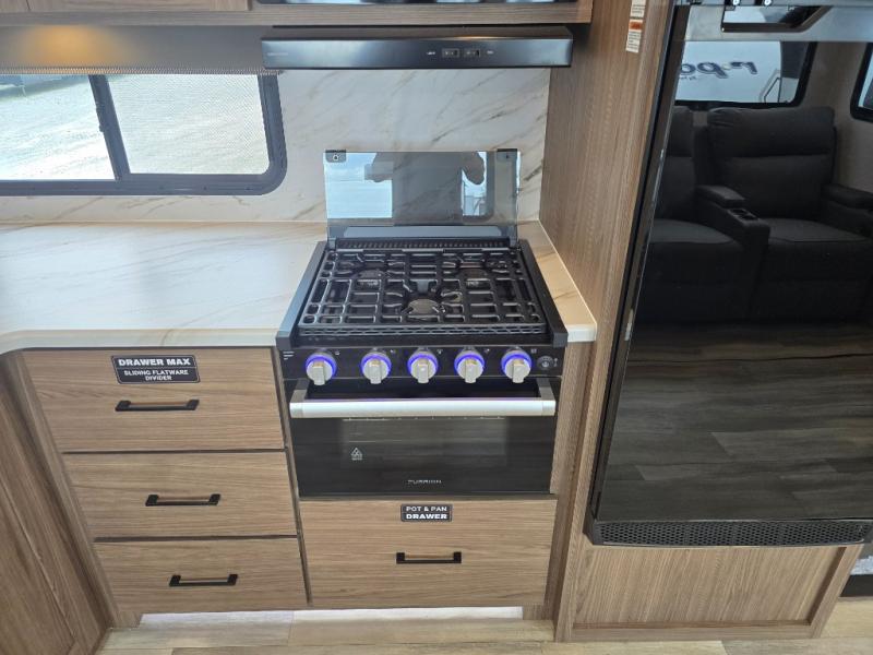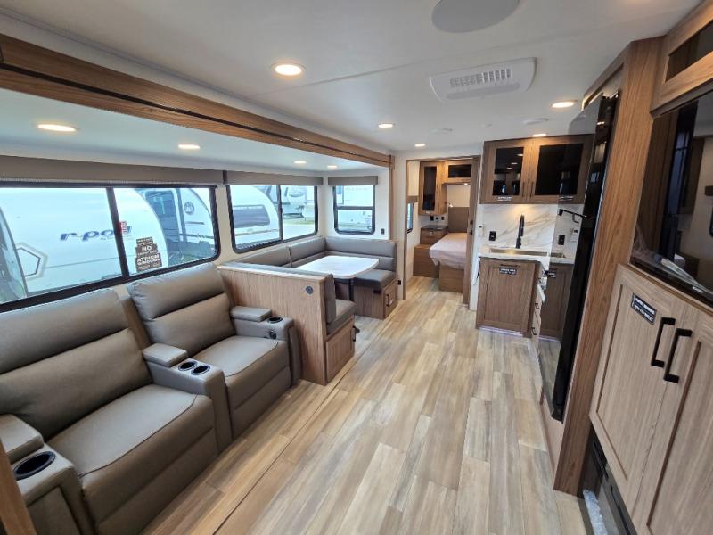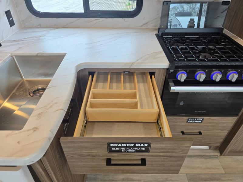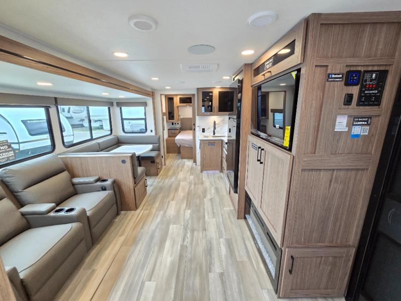 Form and function works together with every one of these Alliance RV Delta travel trailers! They are built with a walk-on roof with a seamless PVC roof covering, Mylar reinforced exterior seals, and a heated and enclosed underbelly to protect your unit in all seasons. The commercial grade vinyl flooring will be easy to clean and the oversized atrium windows throughout let in plenty of natural sunlight. With 62 cu. ft. of drop frame pass-through storage, you can bring along all of your essential camping gear plus it has USB charging for more convenience. There are many at home interior conveniences including a Bluetooth speaker, USB charging throughout, and even a pull-out kitchen trash can. Come find your favorite model today!