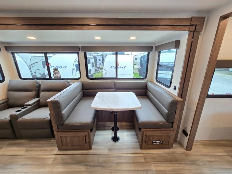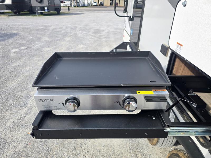 You will love all of your adventures with this Delta travel trailer in tow! This unit is perfect for a couple or even a family of four or six with a queen bed in the front private bedroom, and also using the sofa and U-shaped dinette once converted for more sleeping space. The U-shaped dinette is great for gathering for meals, a board game or game of cards, and the sofa is directly opposite a 40" HDTV which makes viewing enjoyable. You can easily prepare all of your favorite meals and snacks with the kitchen amenities provided inside. A three burner range allows you to easily cook indoors, or you can cook outside using the outdoor griddle/grill if you like. There is a 10 cu. ft. 12V refrigerator to keep all of your perishables and drinks nice and cold, plus a large sink for dishes and cleaning up, and a convenient pull-out trash can and flip-up counter extension as well. You will also appreciate the full rear bath featuring a 30" x 36" shower, toilet, vanity with sink, and linen cabinet for your towels and toiletries.