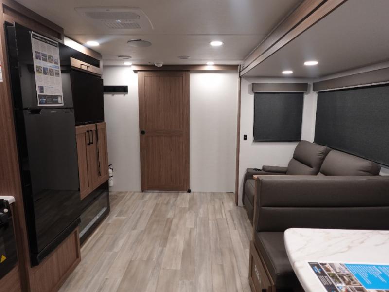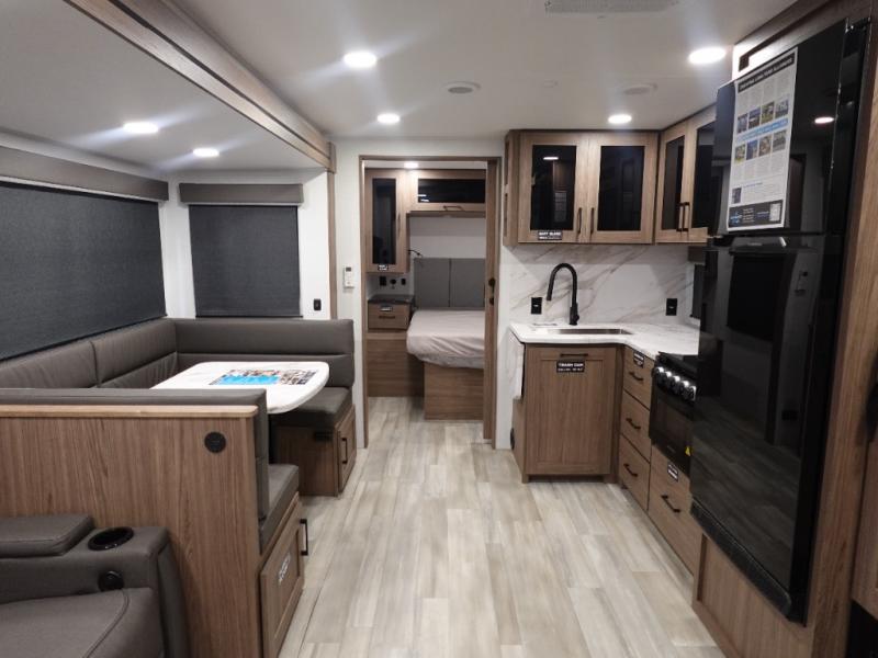 You will love all of your adventures with this Delta travel trailer in tow! This unit is perfect for a couple or even a family of four or six with a queen bed in the front private bedroom, and also using the sofa and U-shaped dinette once converted for more sleeping space. The U-shaped dinette is great for gathering for meals, a board game or game of cards, and the sofa is directly opposite a 40" HDTV which makes viewing enjoyable. You can easily prepare all of your favorite meals and snacks with the kitchen amenities provided inside. A three burner range allows you to easily cook indoors, or you can cook outside using the outdoor griddle/grill if you like. There is a 10 cu. ft. 12V refrigerator to keep all of your perishables and drinks nice and cold, plus a large sink for dishes and cleaning up, and a convenient pull-out trash can and flip-up counter extension as well. You will also appreciate the full rear bath featuring a 30" x 36" shower, toilet, vanity with sink, and linen cabinet for your towels and toiletries.