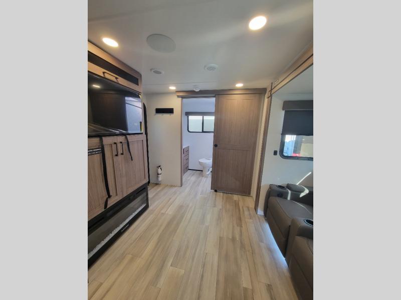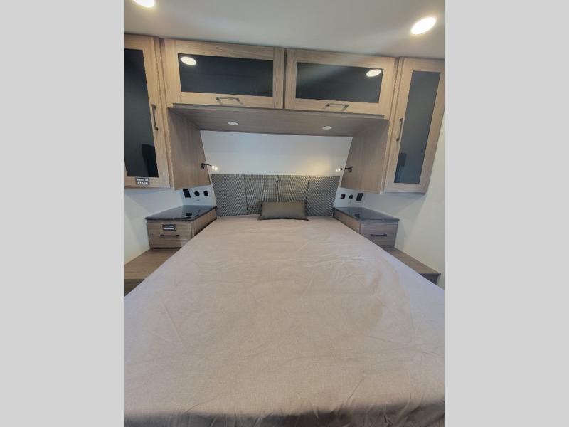 Form and function works together with every one of these Alliance RV Delta travel trailers! They are built with a walk-on roof with a seamless PVC roof covering, Mylar reinforced exterior seals, and a heated and enclosed underbelly to protect your unit in all seasons. The commercial grade vinyl flooring will be easy to clean and the oversized atrium windows throughout let in plenty of natural sunlight. With 62 cu. ft. of drop frame pass-through storage, you can bring along all of your essential camping gear plus it has USB charging for more convenience. There are many at home interior conveniences including a Bluetooth speaker, USB charging throughout, and even a pull-out kitchen trash can. Come find your favorite model today!